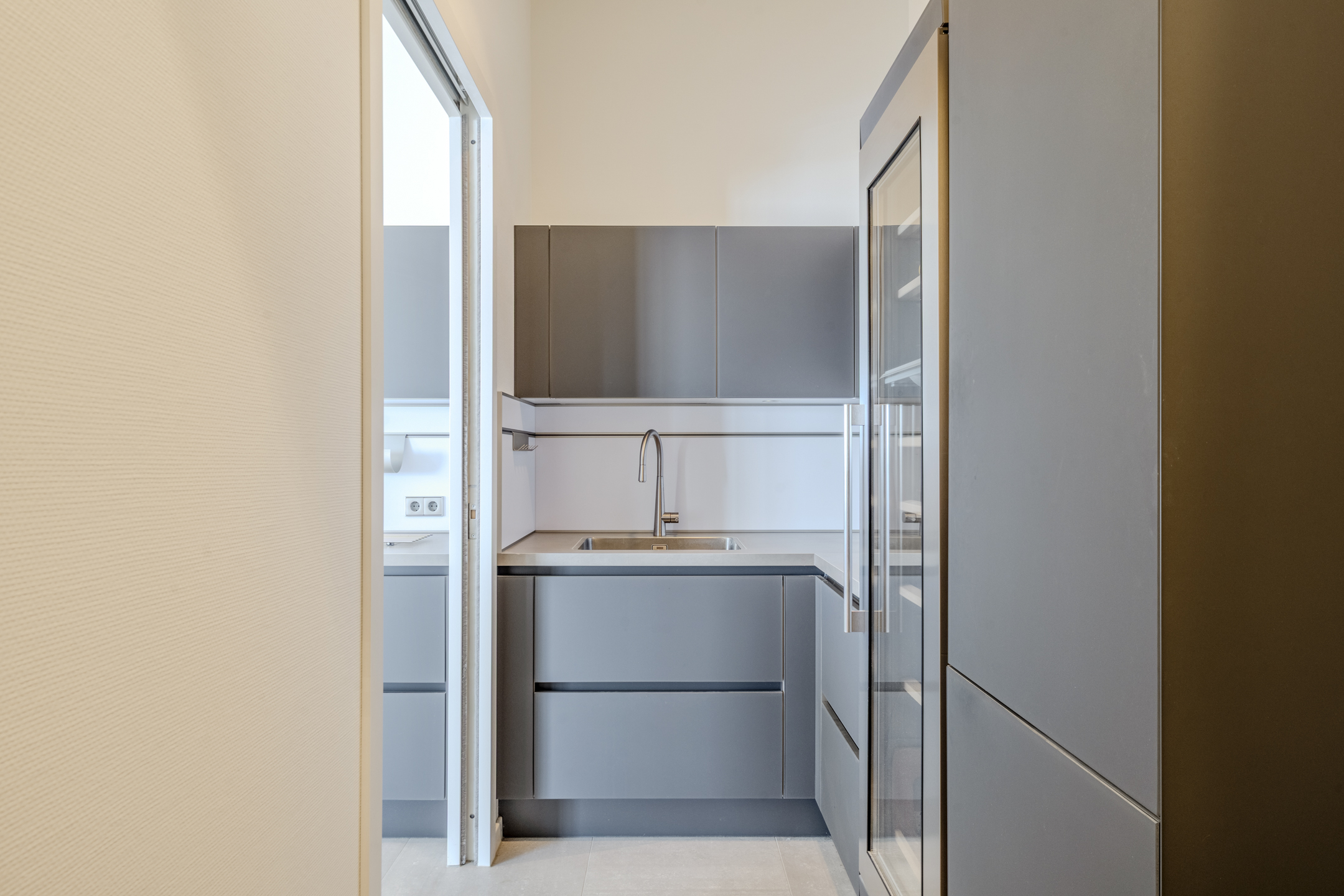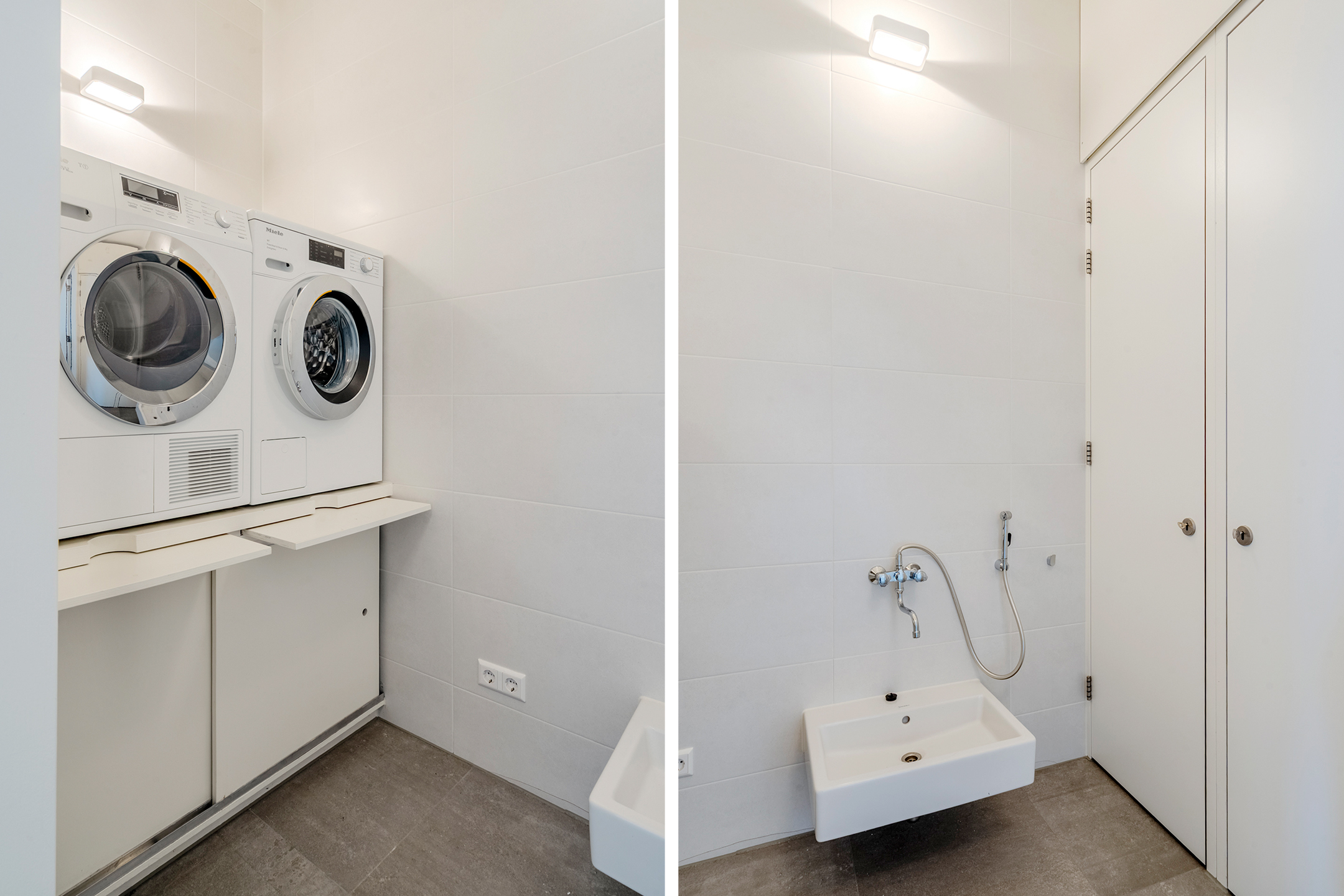 De luxe keuken is perfect voor liefhebbers van koken en gezellig tafelen. Vrijwel alle denkbare apparatuur is aanwezig waaronder, naast de standaarduitrusting, ook een stoomoven. Aansluitend vindt u een praktische bijkeuken met extra bergruimte en onder andere een wijnkoeler. De bijkeuken is tevens voorzien van een afzuigsysteem.