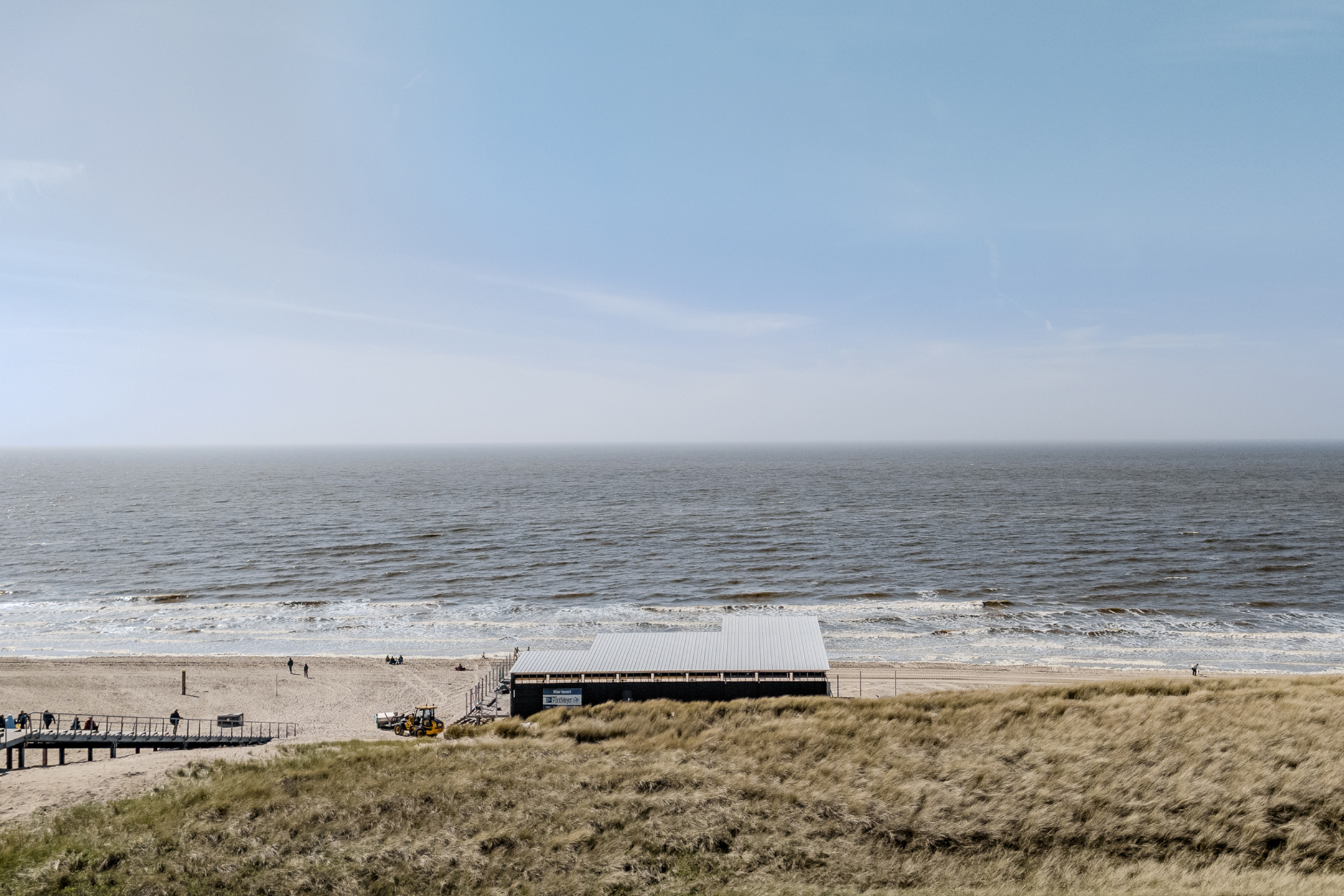 – Panoramisch uitzicht over de Noordzee kustlijn;