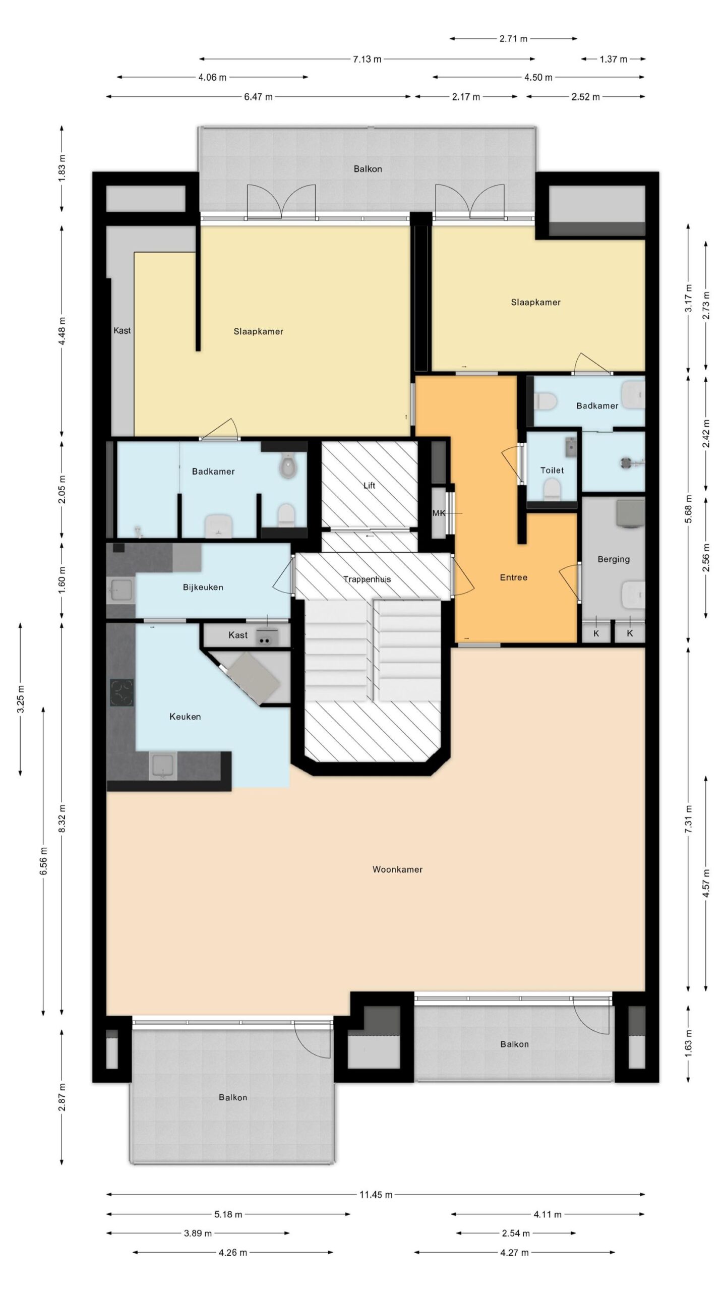 – Totaal 3 balkons met 32 m2 gebruiksoppervlak;