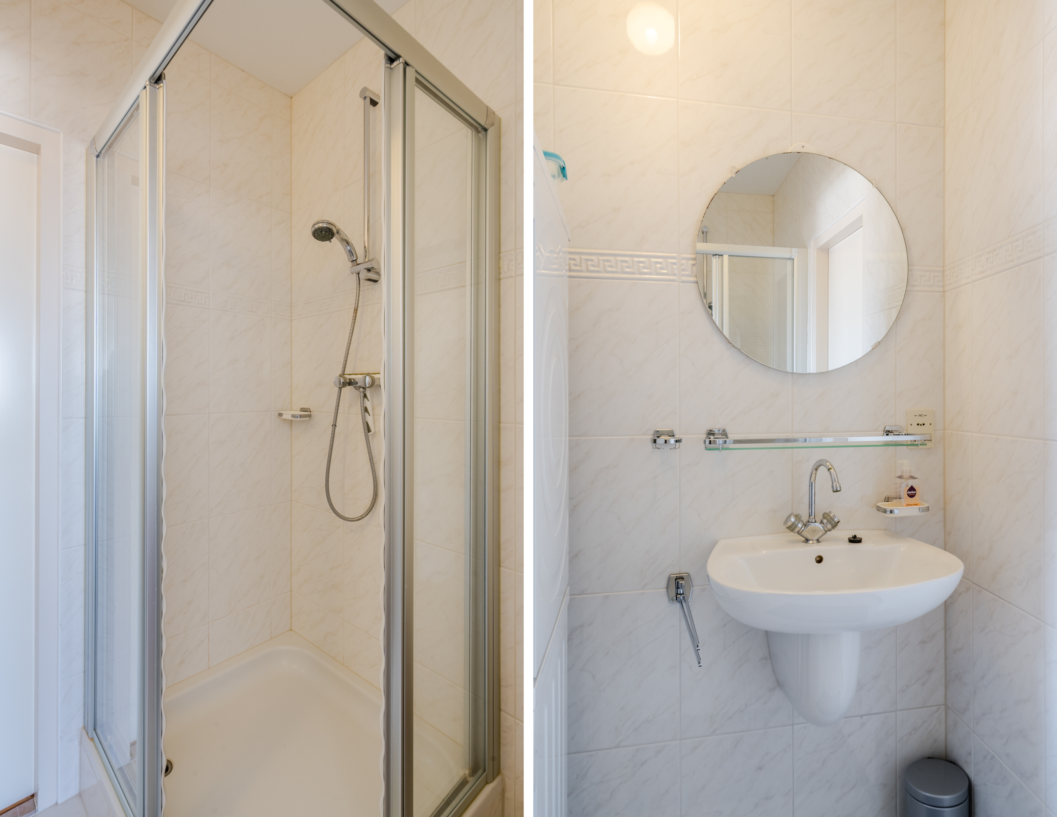 - Badkamervoorzieningen Douche, wastafel, wasmachineaansluiting