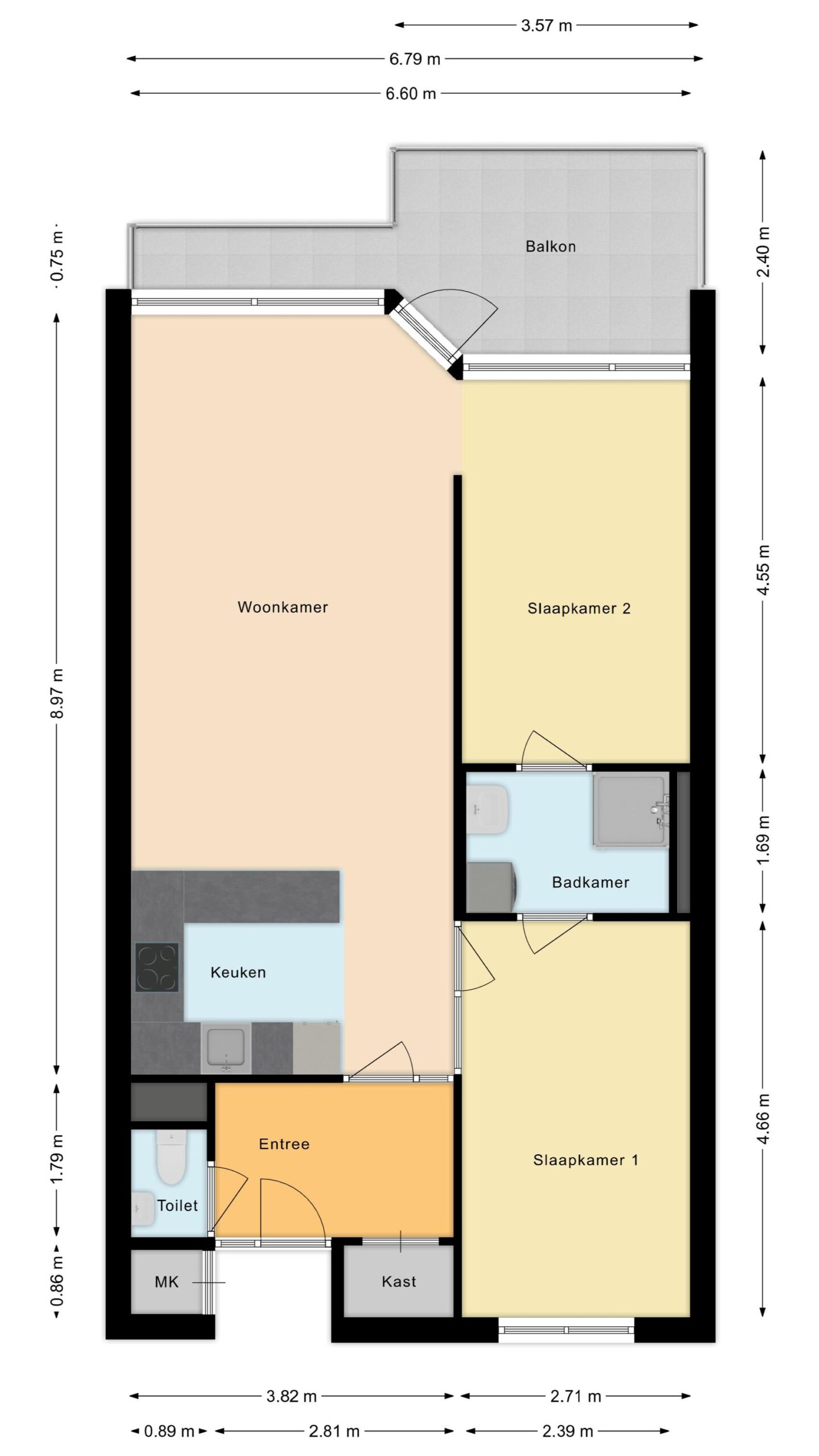 – 2 slaapkamers;