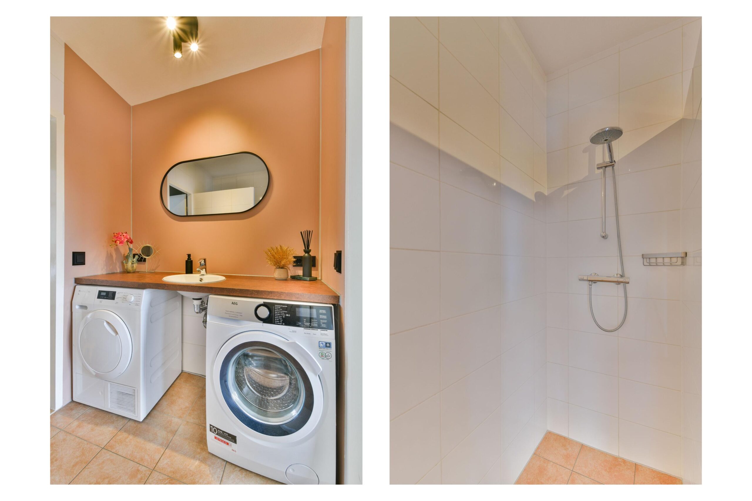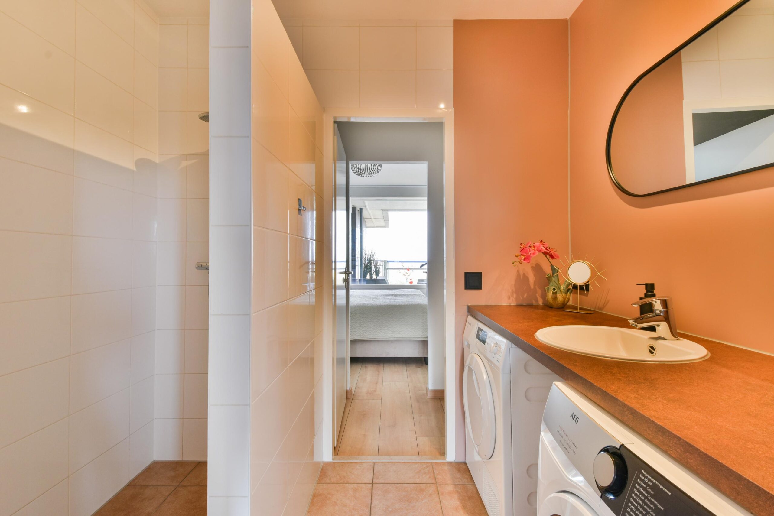* Aparte witgoed-opstelling in badkamer