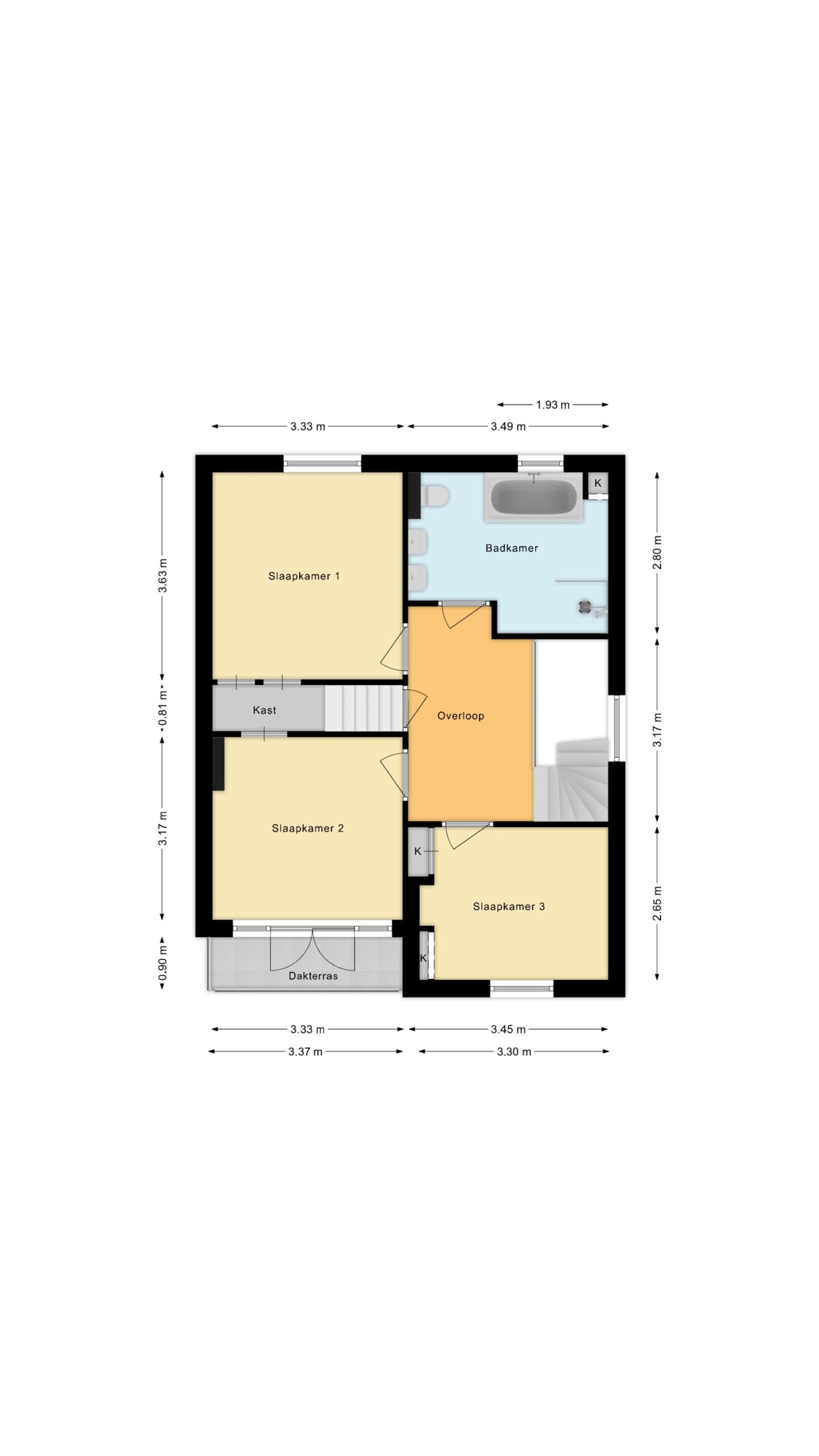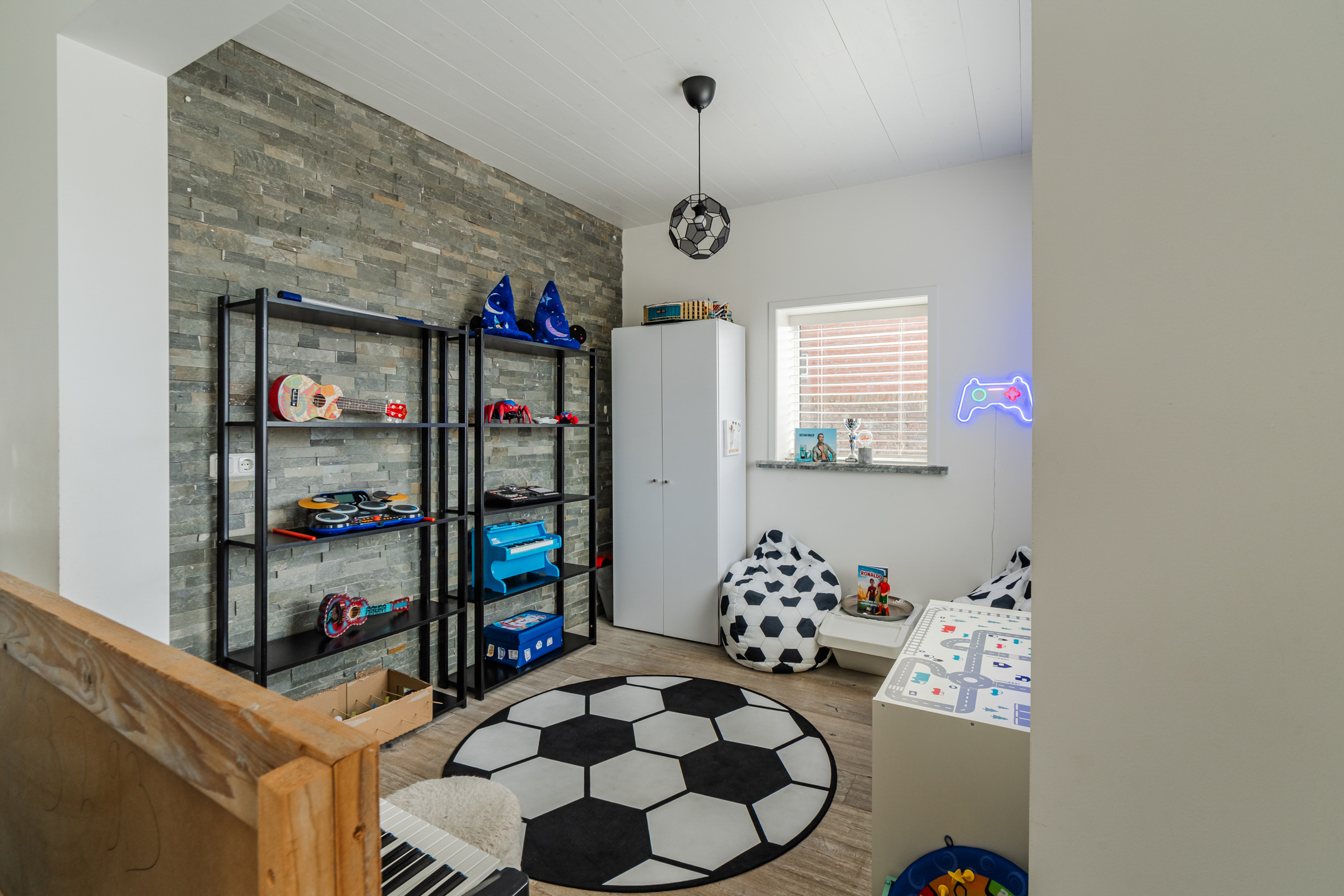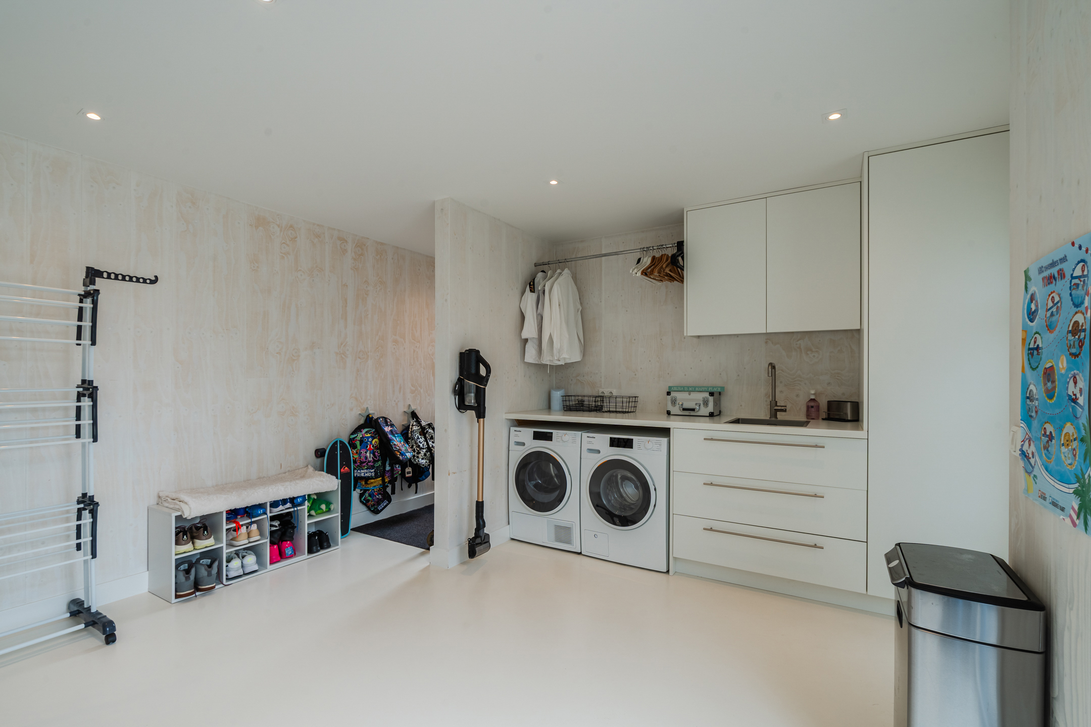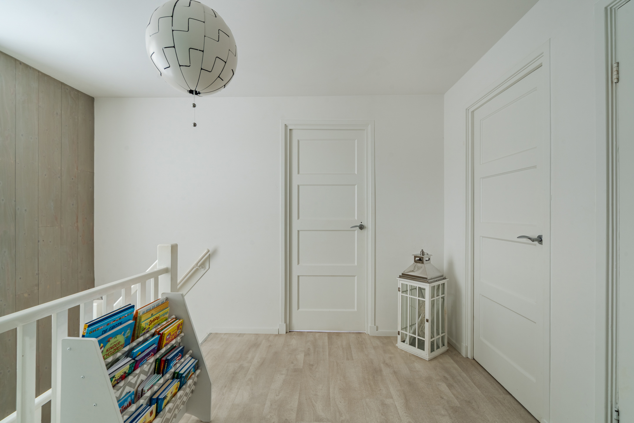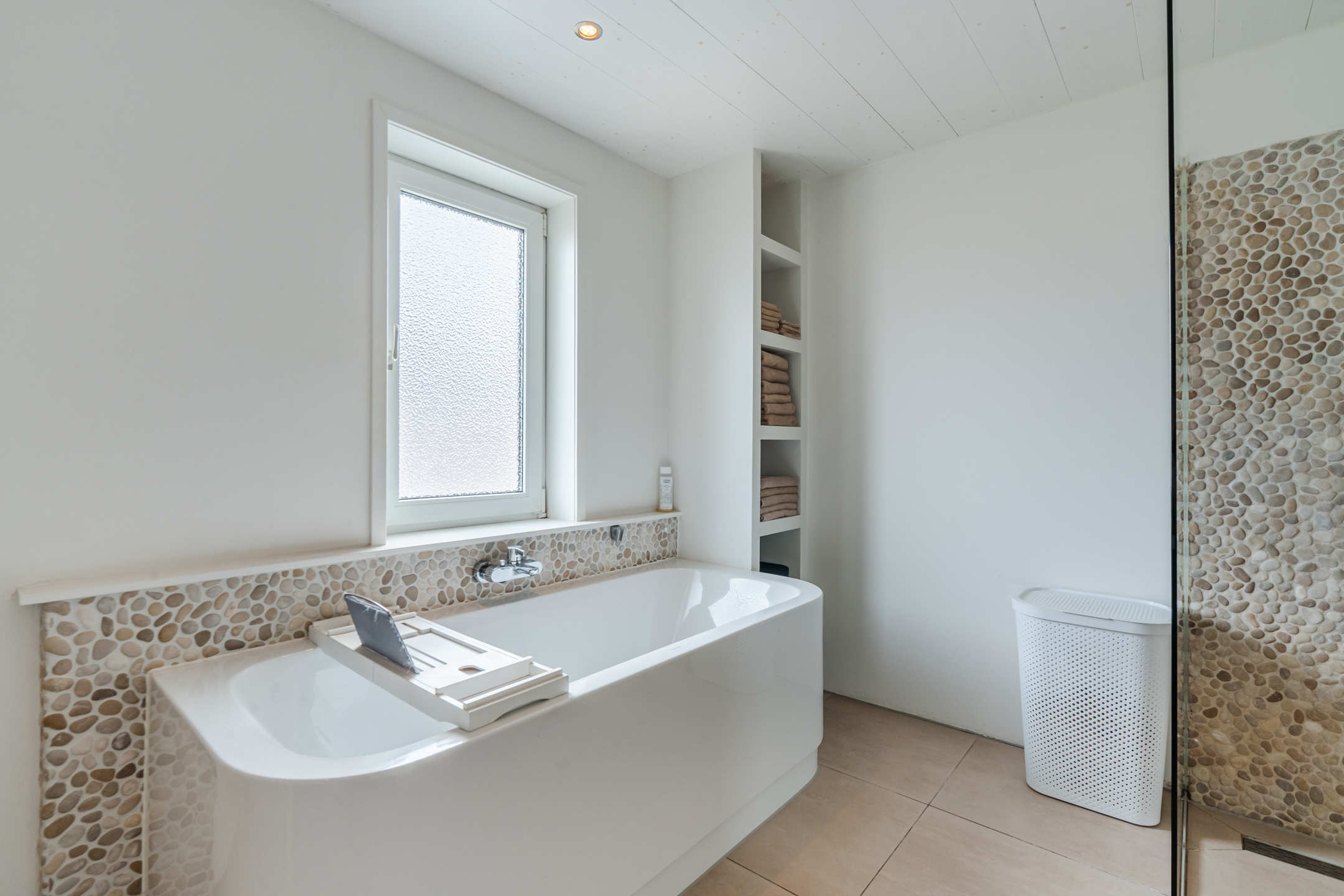 Op de eerste verdieping bevinden zich drie ruime, lichte slaapkamers en een royale badkamer met ligbad, inloopdouche, dubbele wastafel en toilet. Vanzelfsprekend heeft de badkamer vloerverwarming.