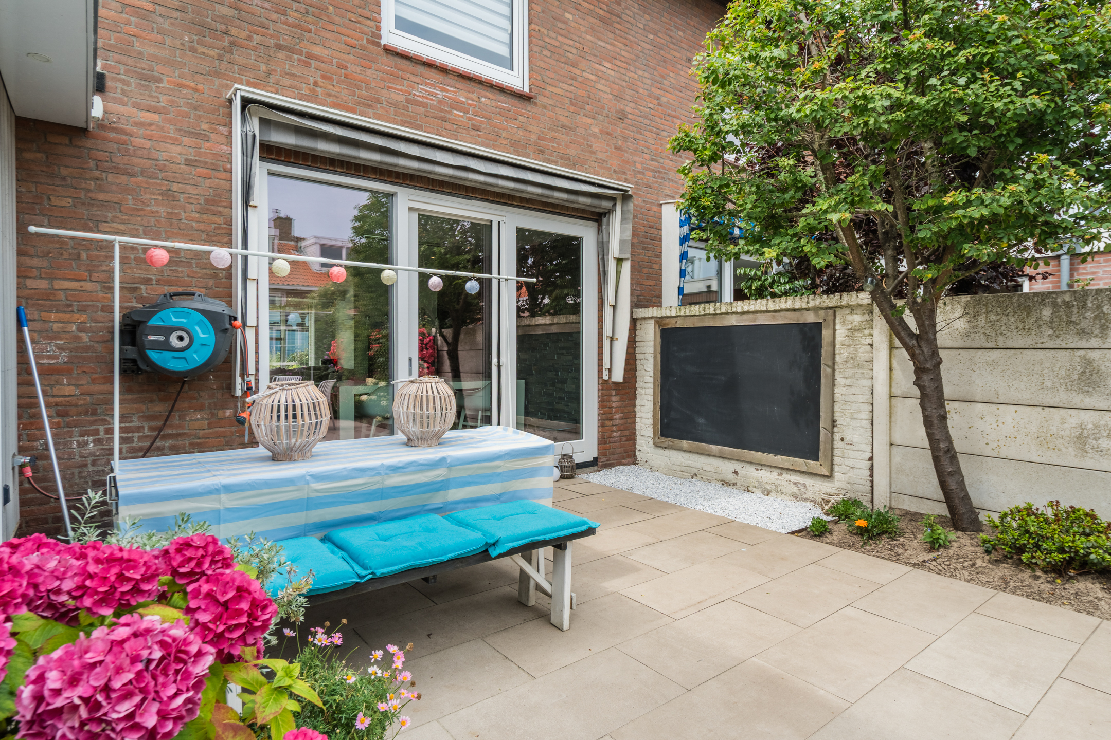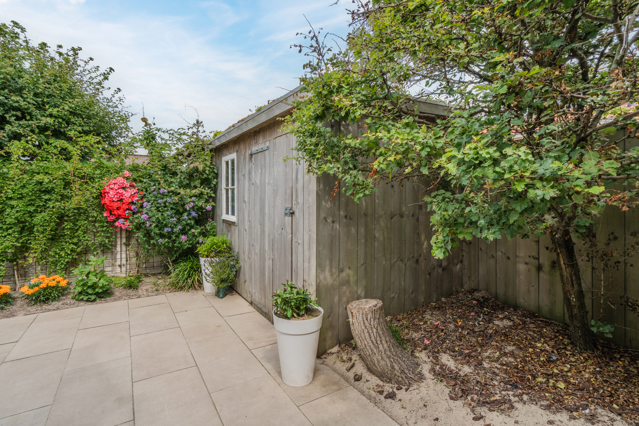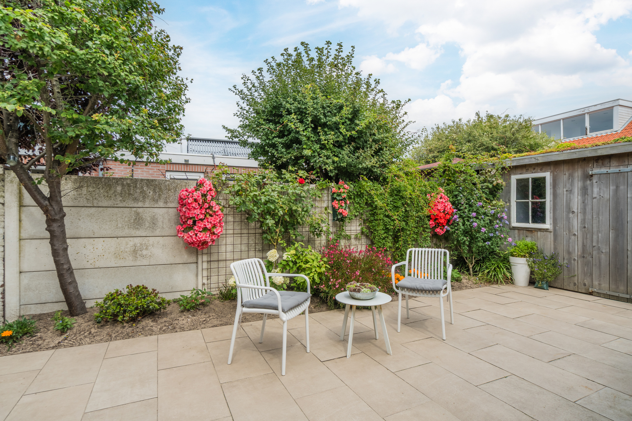 De woning beschikt over zowel een voor- als achtertuin. De achtertuin biedt veel privacy en is een heerlijke plek om te ontspannen, terwijl u op de tweede verdieping vanaf het inpandige balkon en terras kunt genieten van het weidse uitzicht over zee en de ondergaande zon.