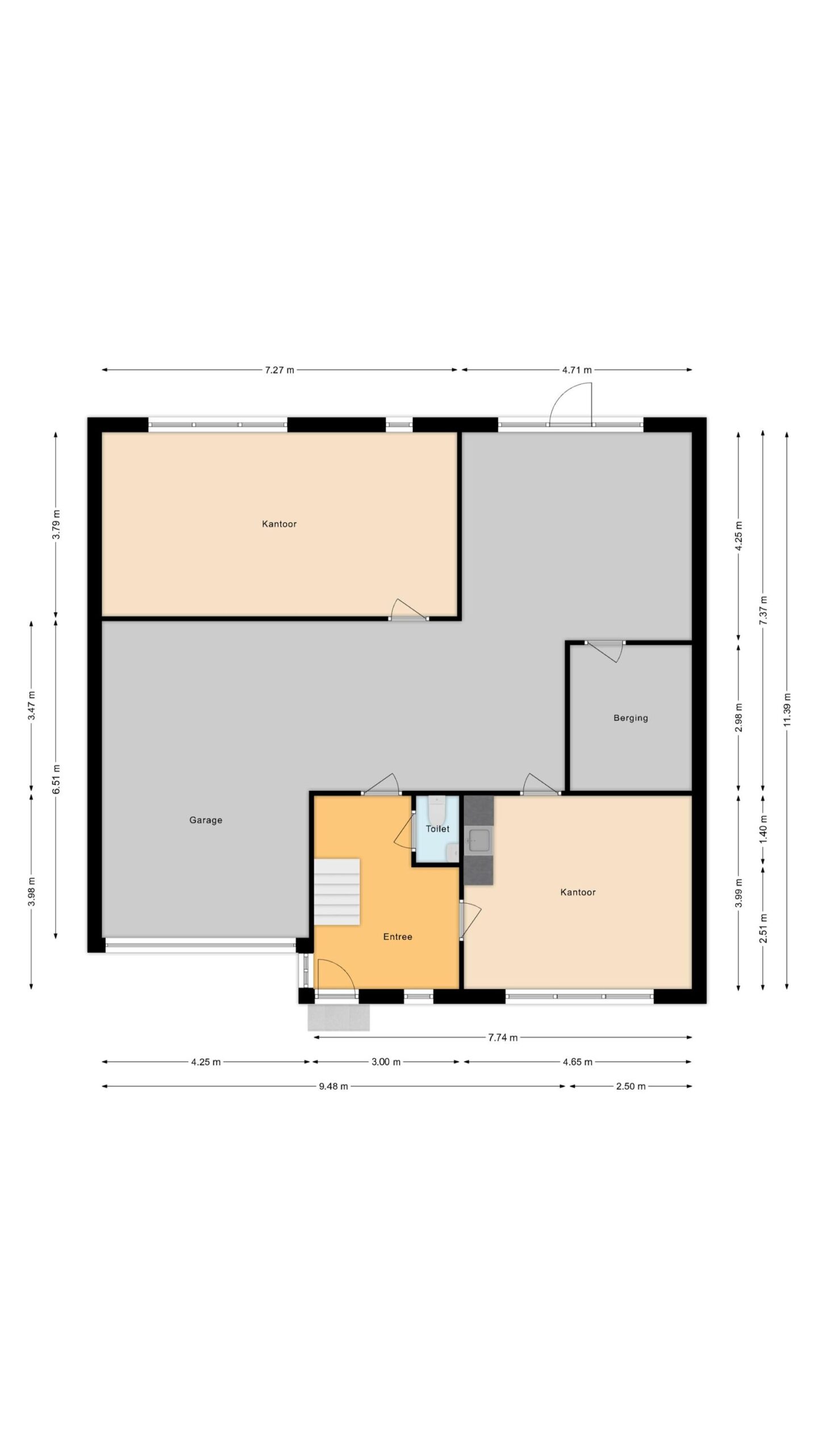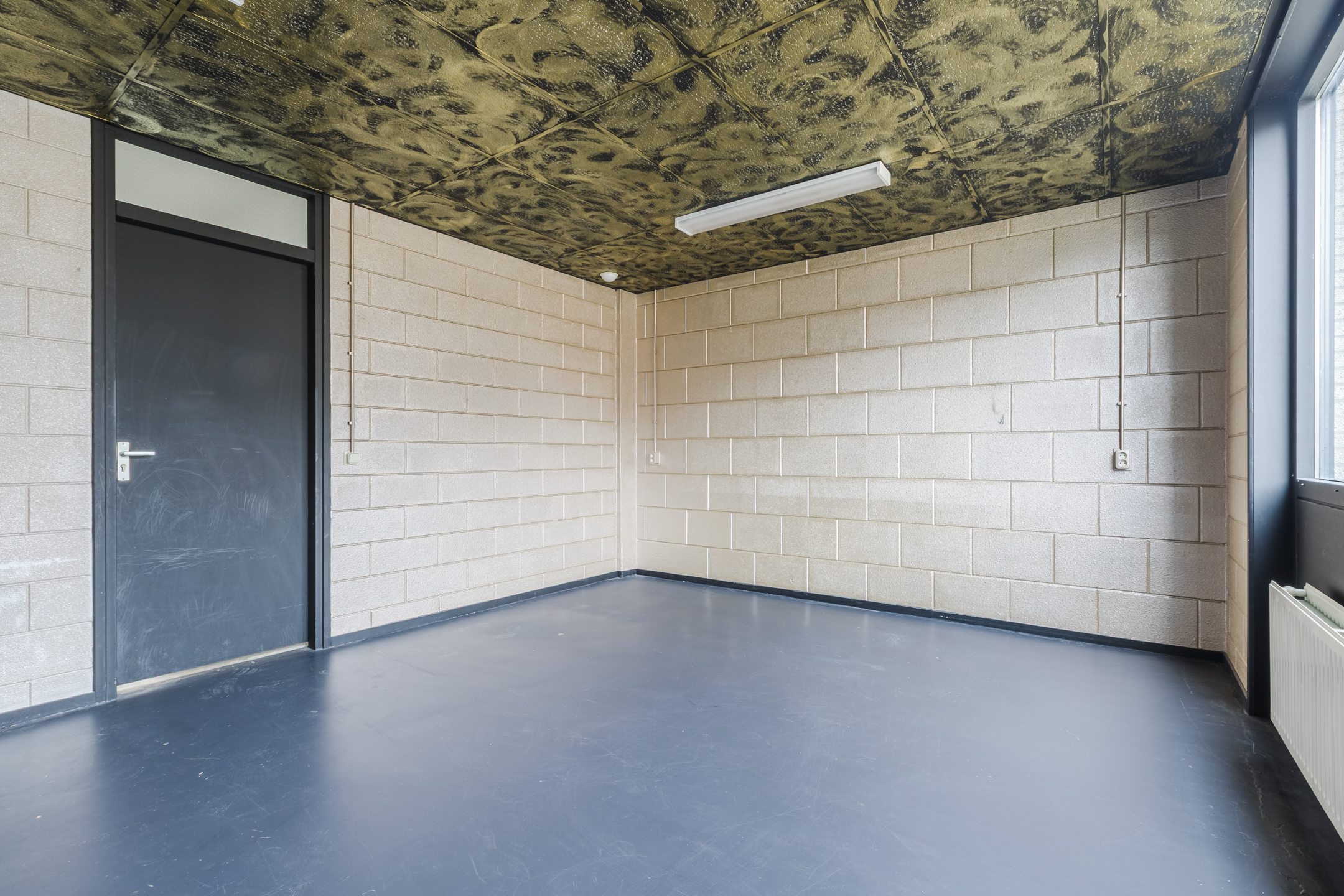 De begane grond is geheel ingericht als bedrijfspand en bestaat uit verschillende ruimten waaronder een kantoor/kantine met kitchenette. Naast een loopdeur betreed u de bedrijfsruimte via een elektrische overheaddeur.