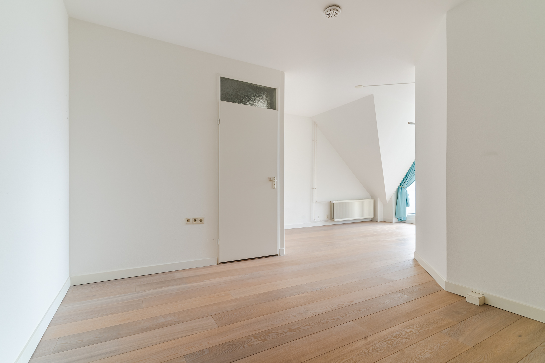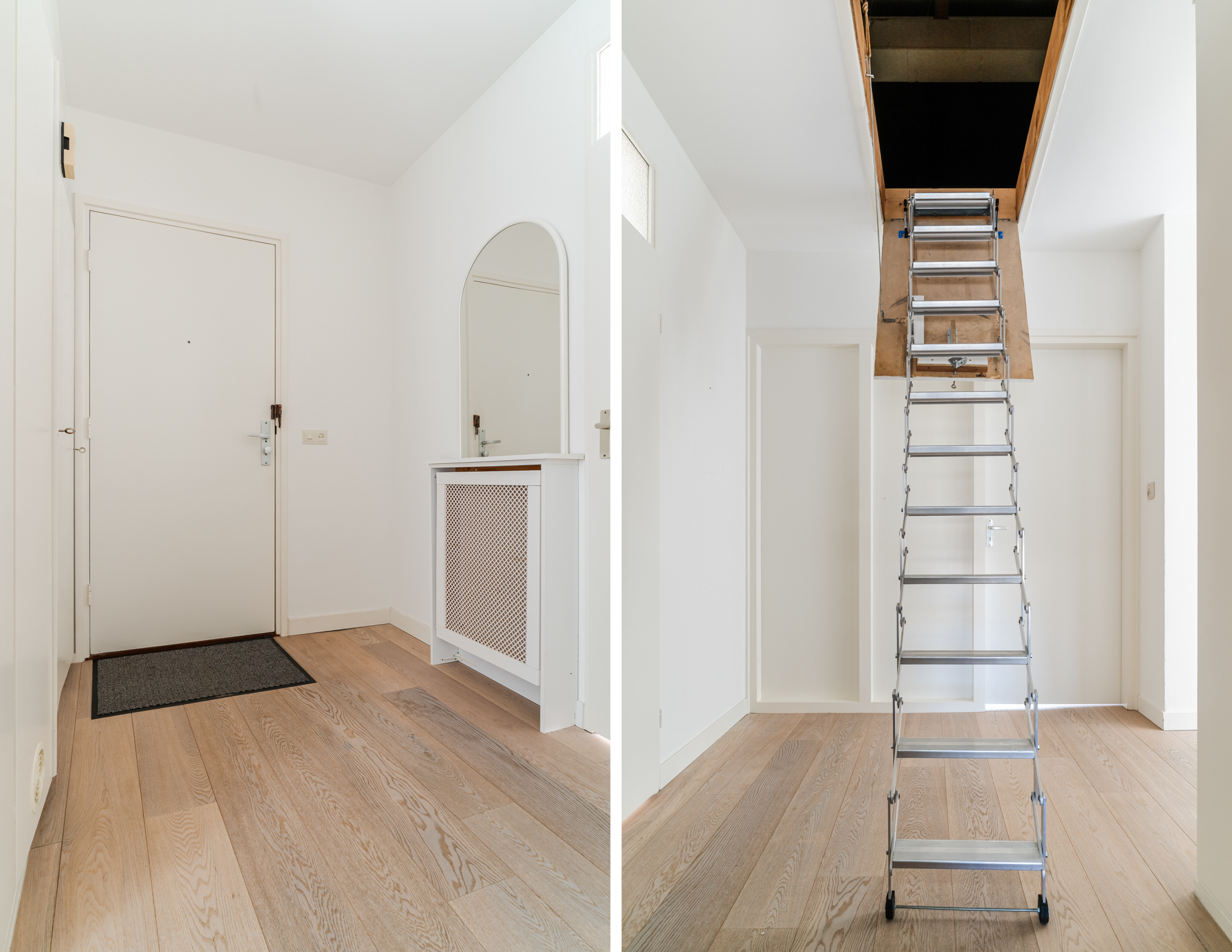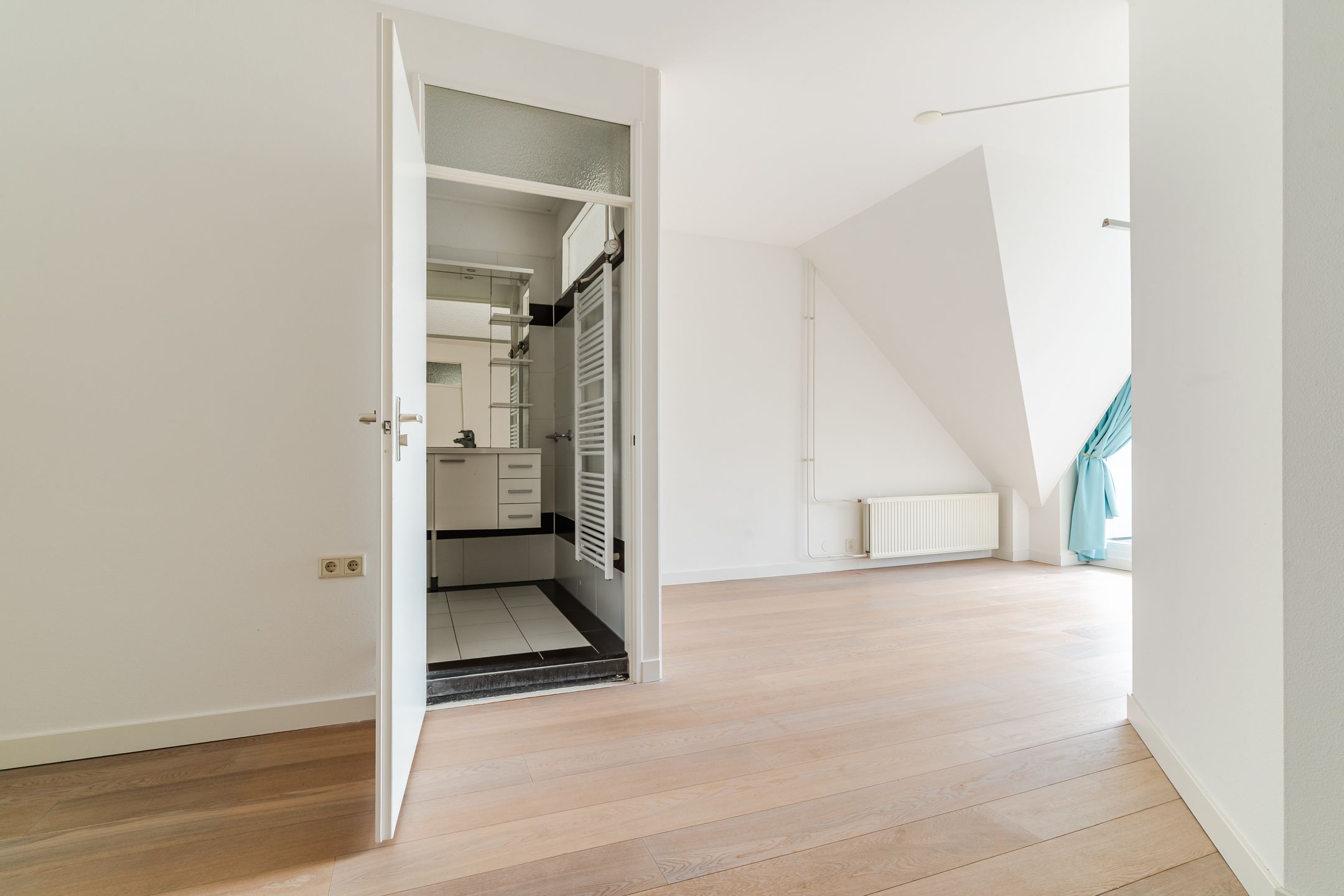Binnen valt direct de ruime woonkamer met hoge plafonds, veel lichtinval en een fraaie erker op. De keuken is voorzien van diverse inbouwapparatuur. Het appartement telt 2 ruime slaapkamers en 2 badkamers, waarvan één met douche, ligbad en dubbele wastafel, en een tweede met douche, toilet en wastafel. Daarnaast is er een separaat toilet met wasmachineaansluiting en een gigantische bergvliering met CV-ketel opstelling en mechanische ventilatiebox voor extra opslagruimte te bereiken middels vlizotrap. Voor comfort zijn er 2 airco’s, geschikt voor koelen én verwarmen.