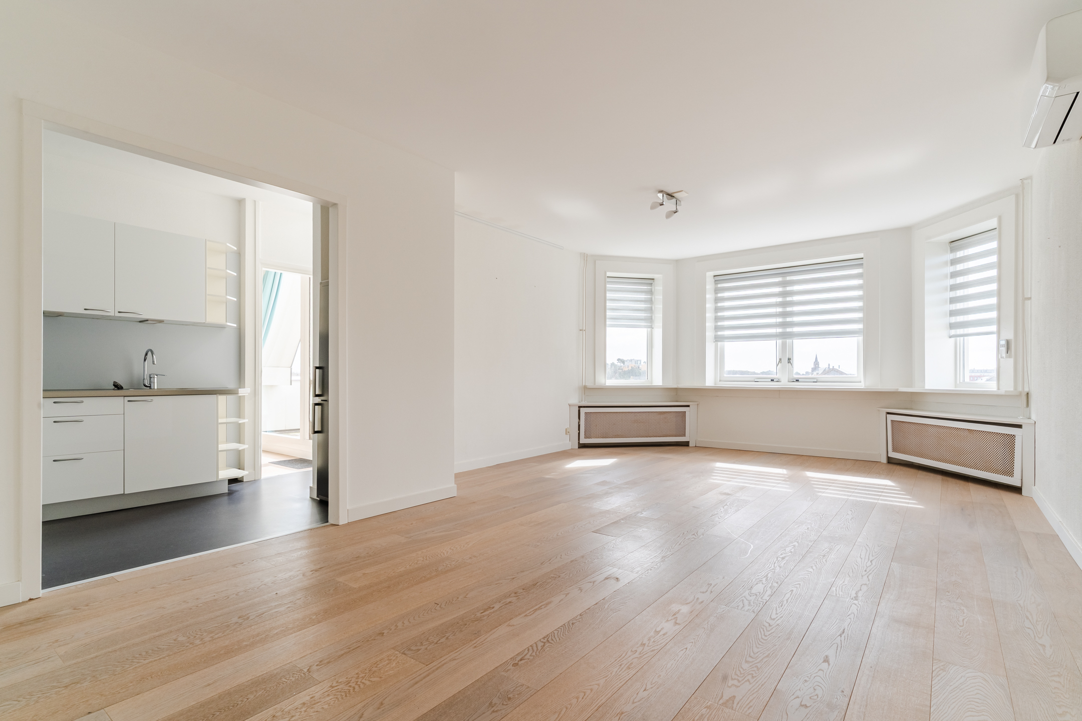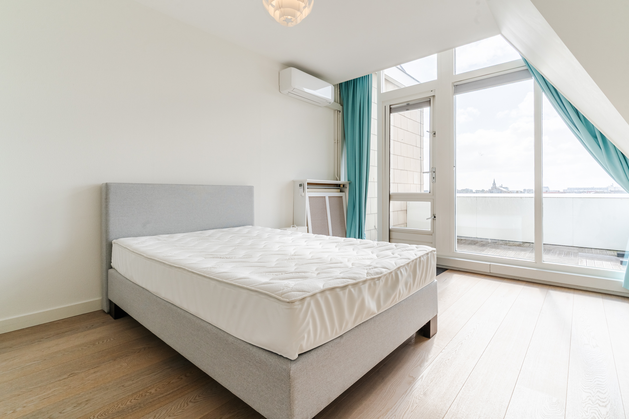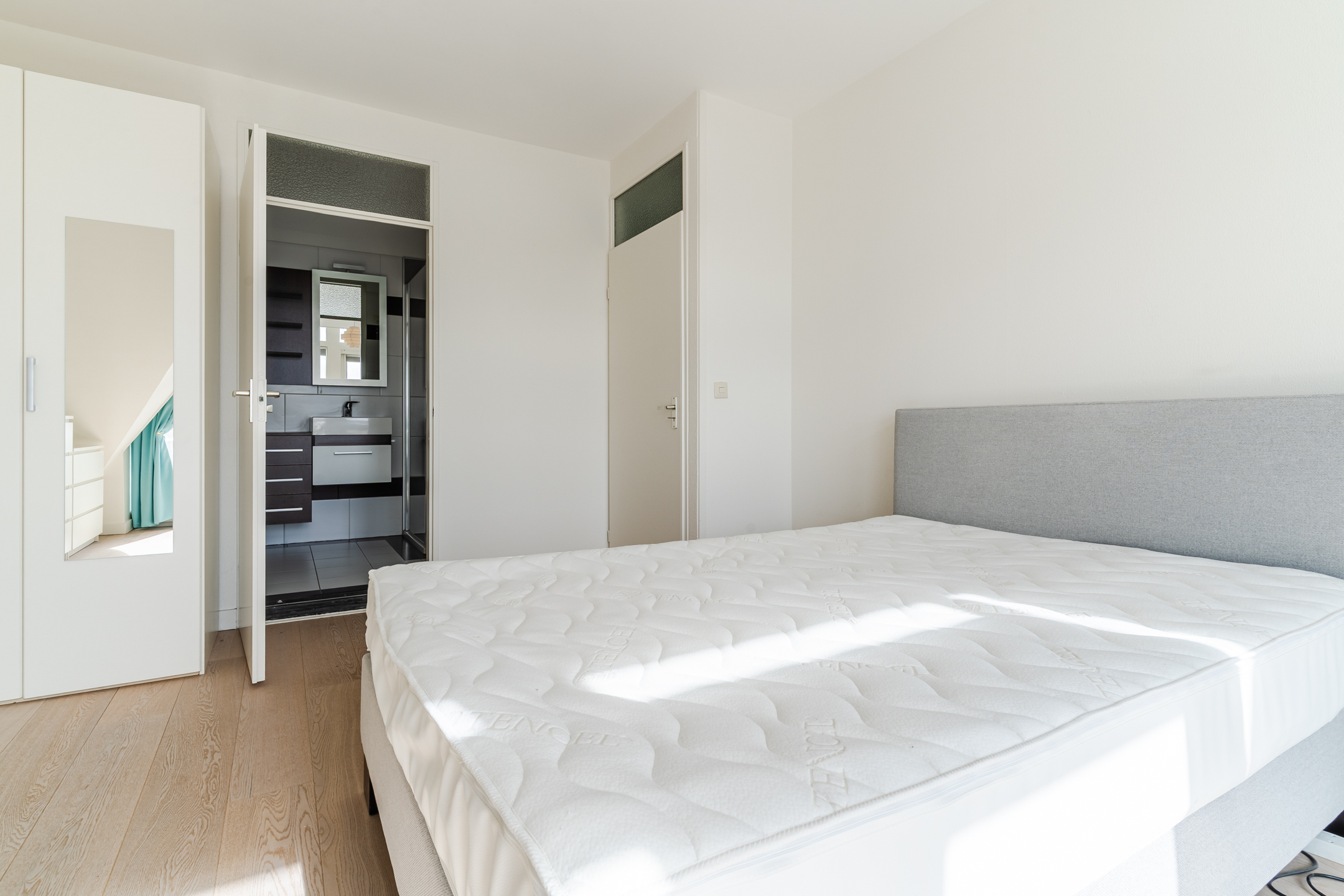 Binnen valt direct de ruime woonkamer met hoge plafonds, veel lichtinval en een fraaie erker op. De keuken is voorzien van diverse inbouwapparatuur. Het appartement telt 2 ruime slaapkamers en 2 badkamers, waarvan één met douche, ligbad en dubbele wastafel, en een tweede met douche, toilet en wastafel. Daarnaast is er een separaat toilet met wasmachineaansluiting en een gigantische bergvliering met CV-ketel opstelling en mechanische ventilatiebox voor extra opslagruimte te bereiken middels vlizotrap. Voor comfort zijn er 2 airco’s, geschikt voor koelen én verwarmen.