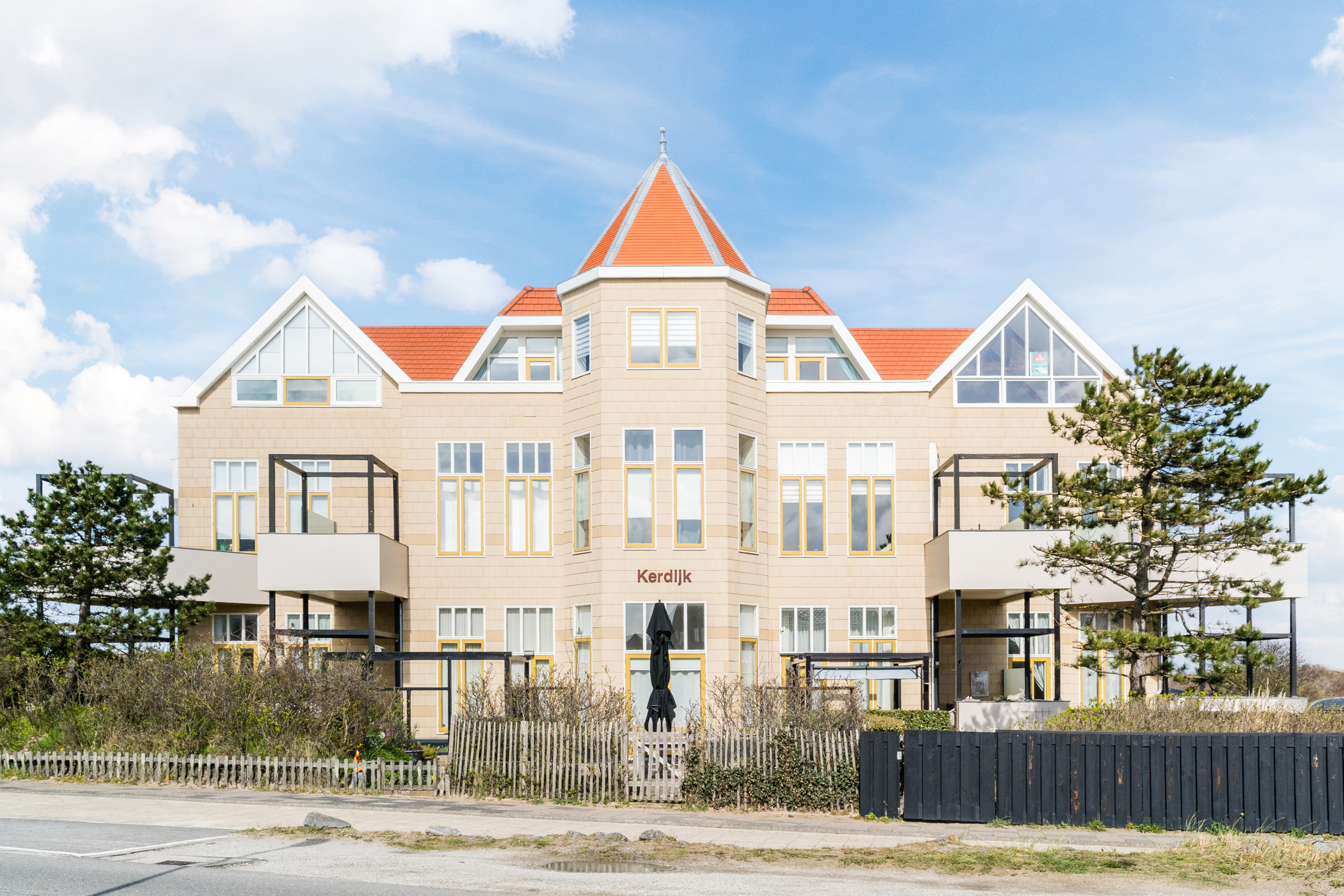 Het penthouse bevindt zich op slechts 200 meter van het strand, in het karakteristieke voormalige koloniehuis ‘Kerdijk’. Dit pand, ooit een kinderkolonie, werd in 1985 omgevormd tot een kleinschalig appartementencomplex van 12 woningen, compleet met lift, waardoor het appartement zeer geschikt is voor senioren, maar natuurlijk voor iedereen comfortabel bereikbaar is.