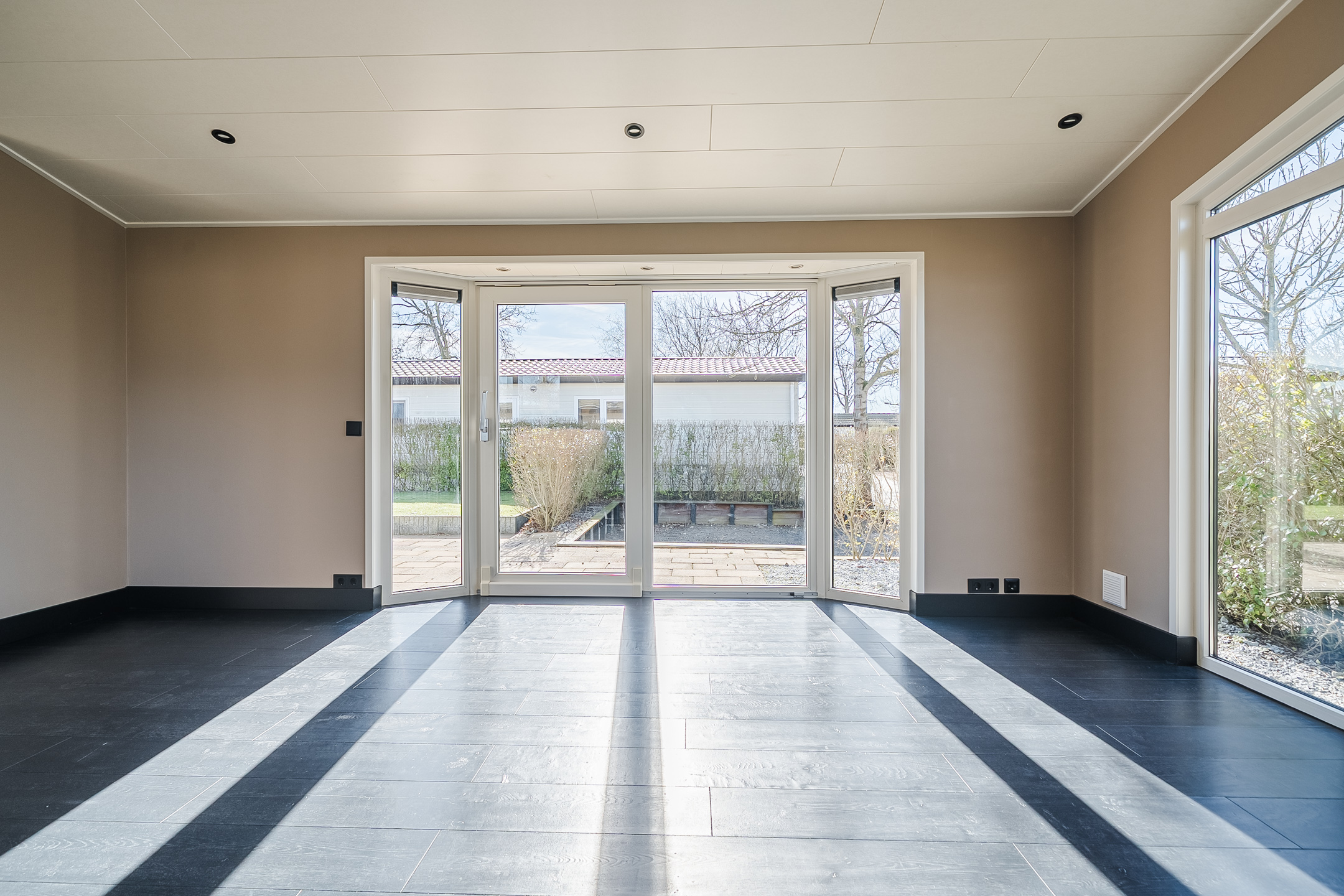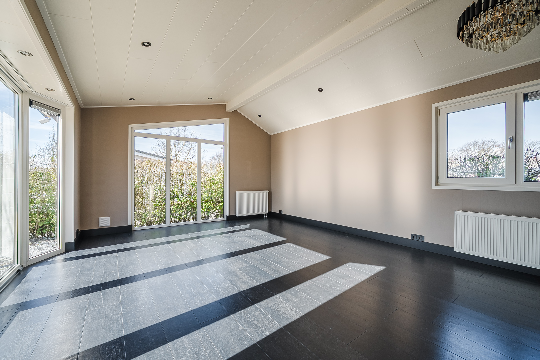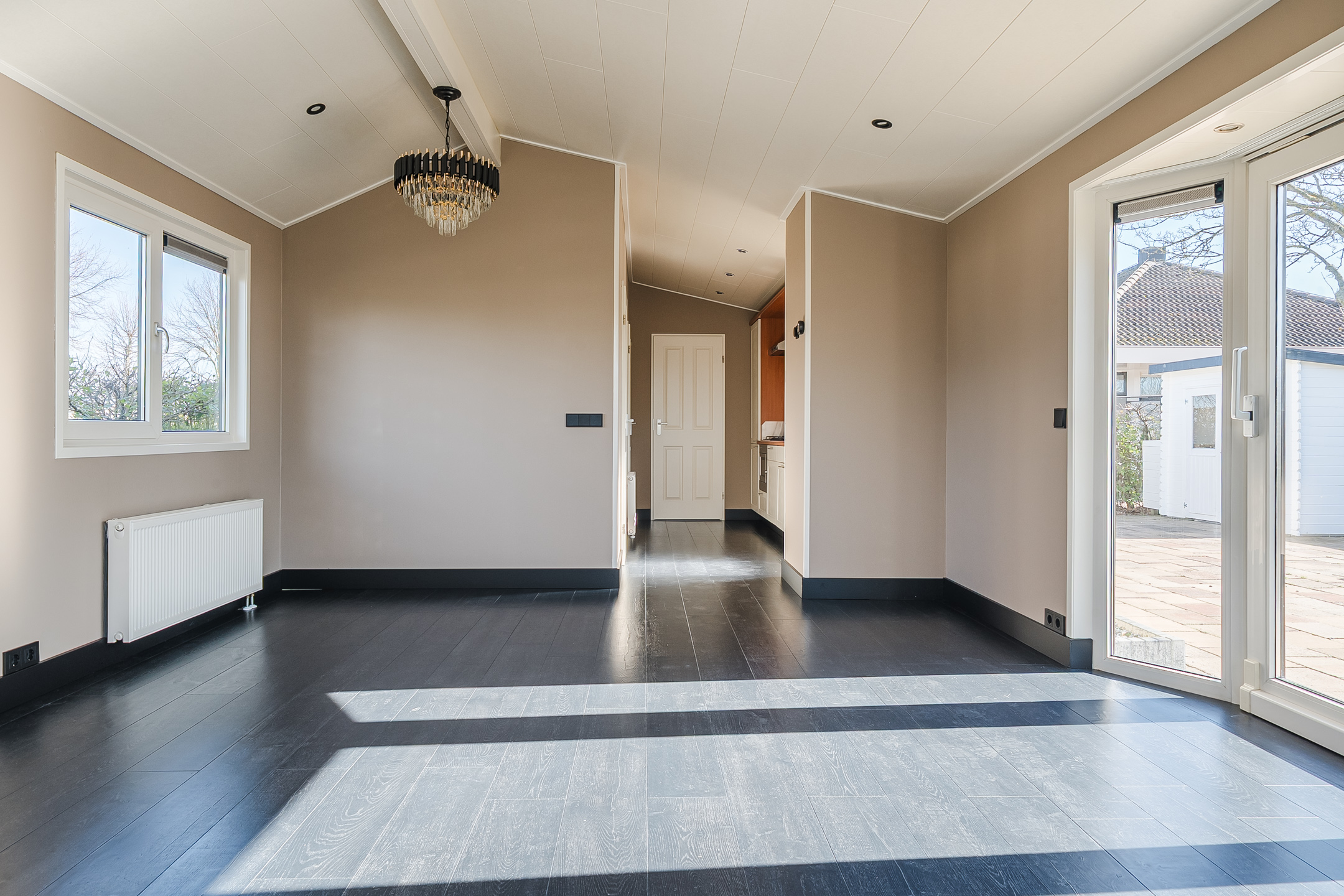 * Lichte, ruime woonkamer met schuifpui