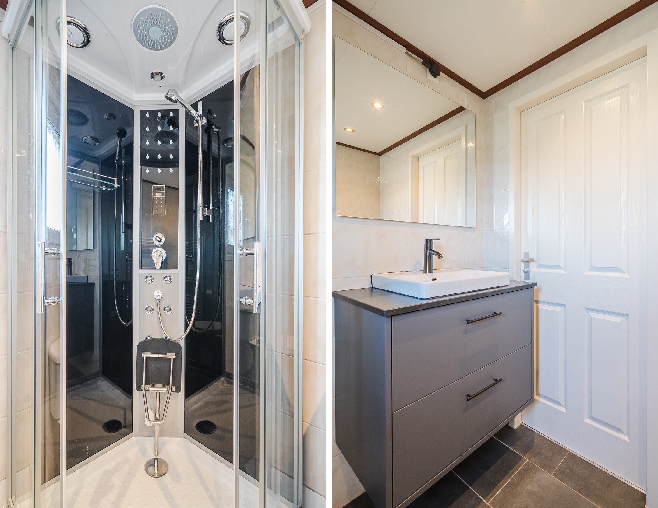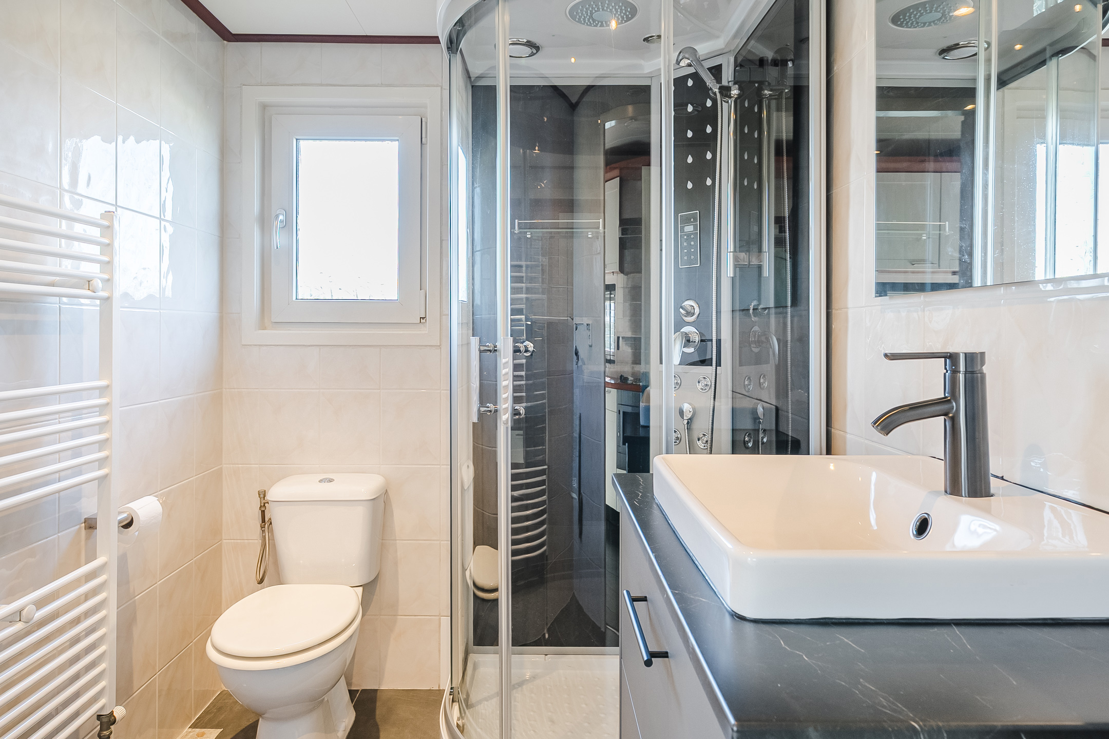 - Badkamervoorzieningen Toilet, douche, wastafelmeubel, wasmachineaansluiting