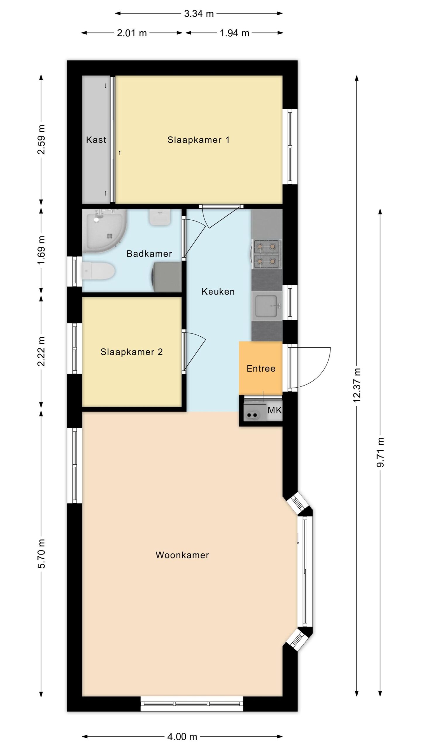 - Aantal slaapkamers 2 slaapkamers