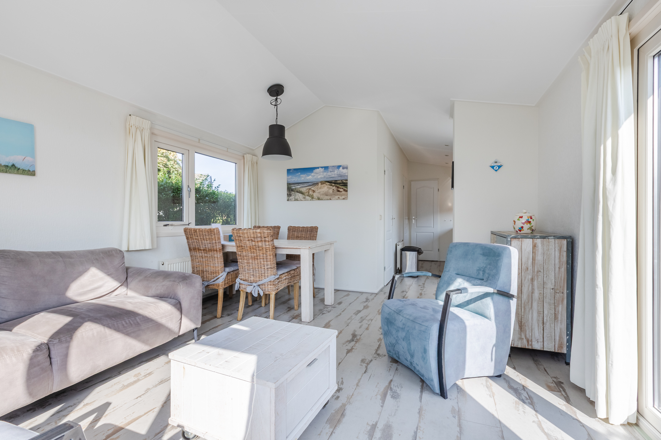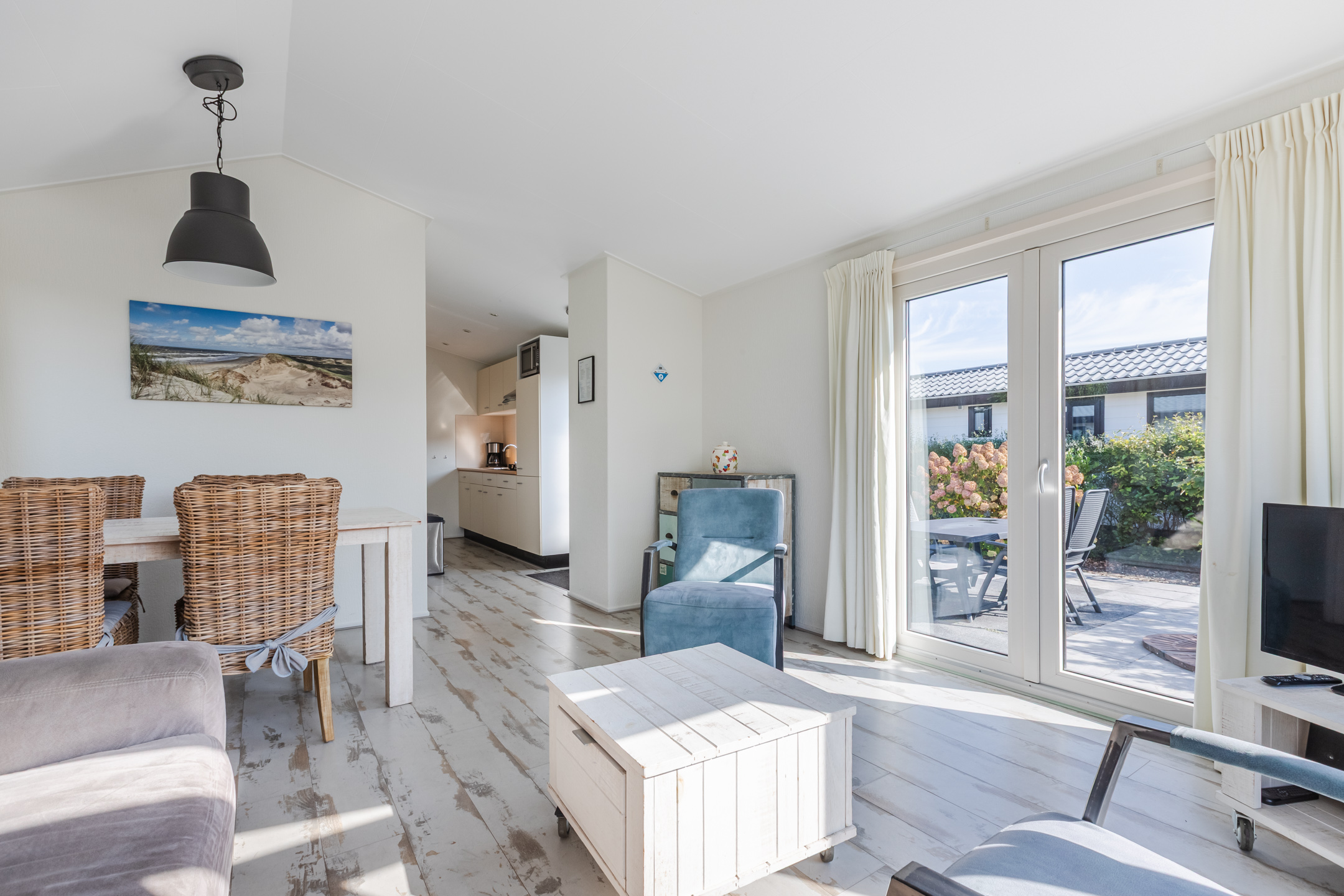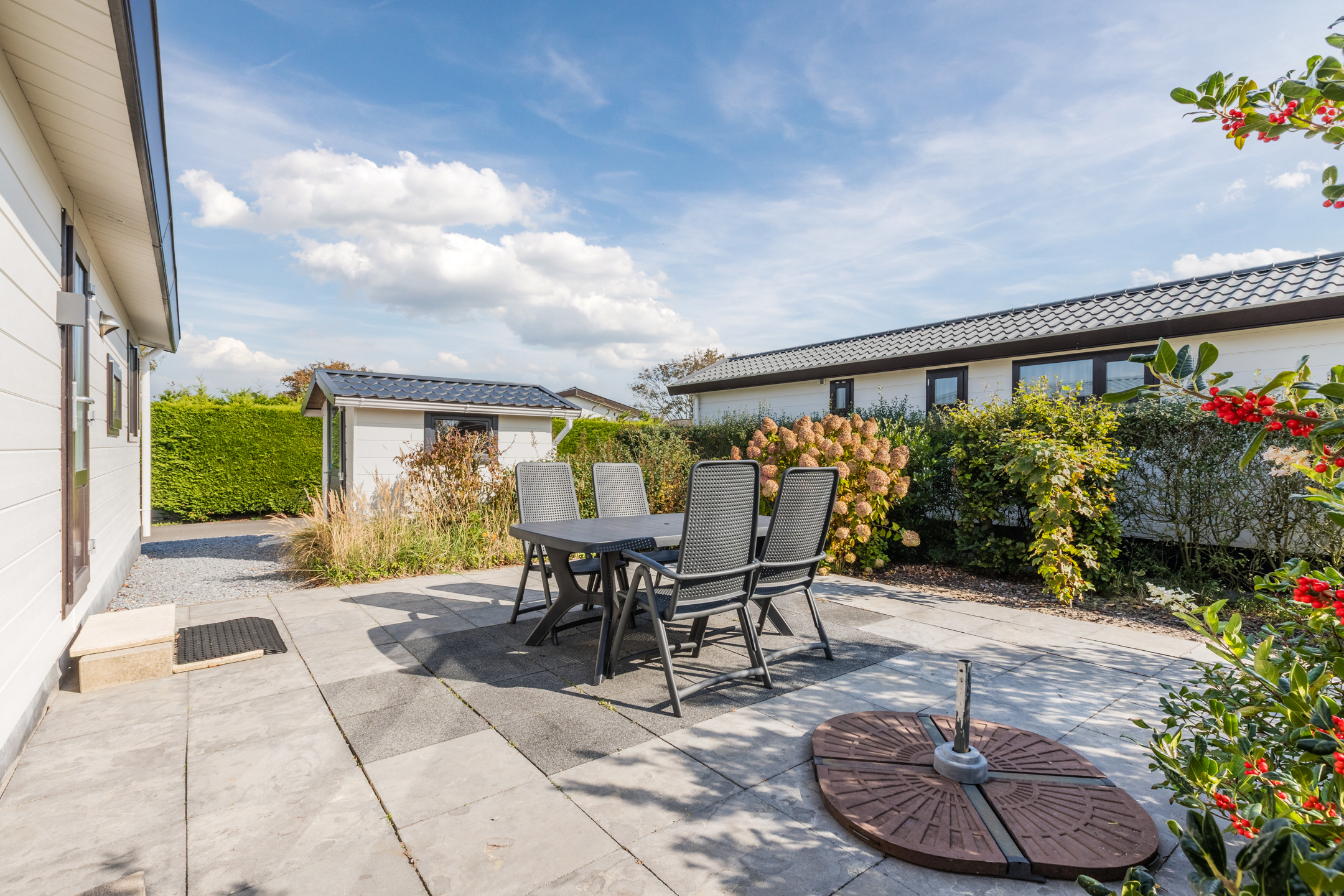 Op een heerlijk rustige plek op recreatiepark De Woudhoeve in Egmond aan den Hoef staat dit sfeervolle vrijstaande chalet op eigen grond.