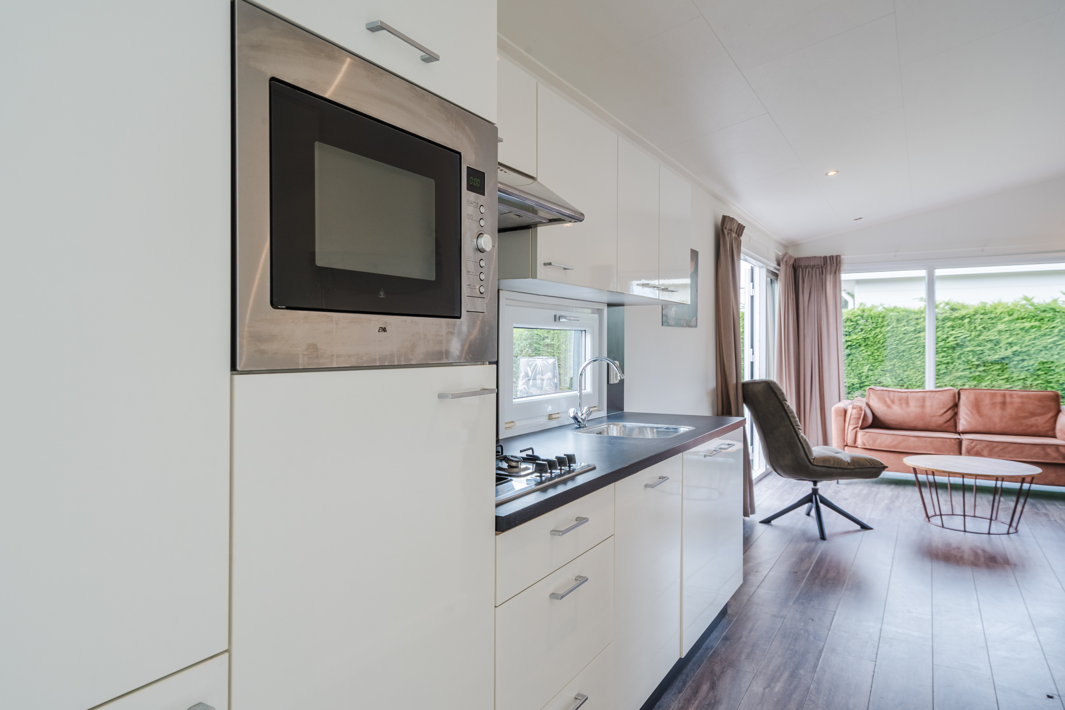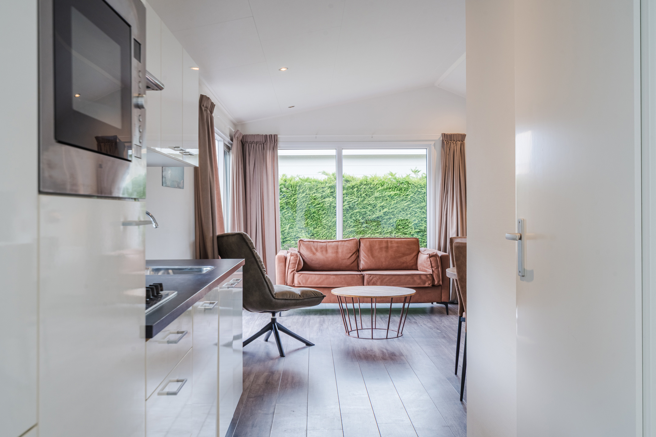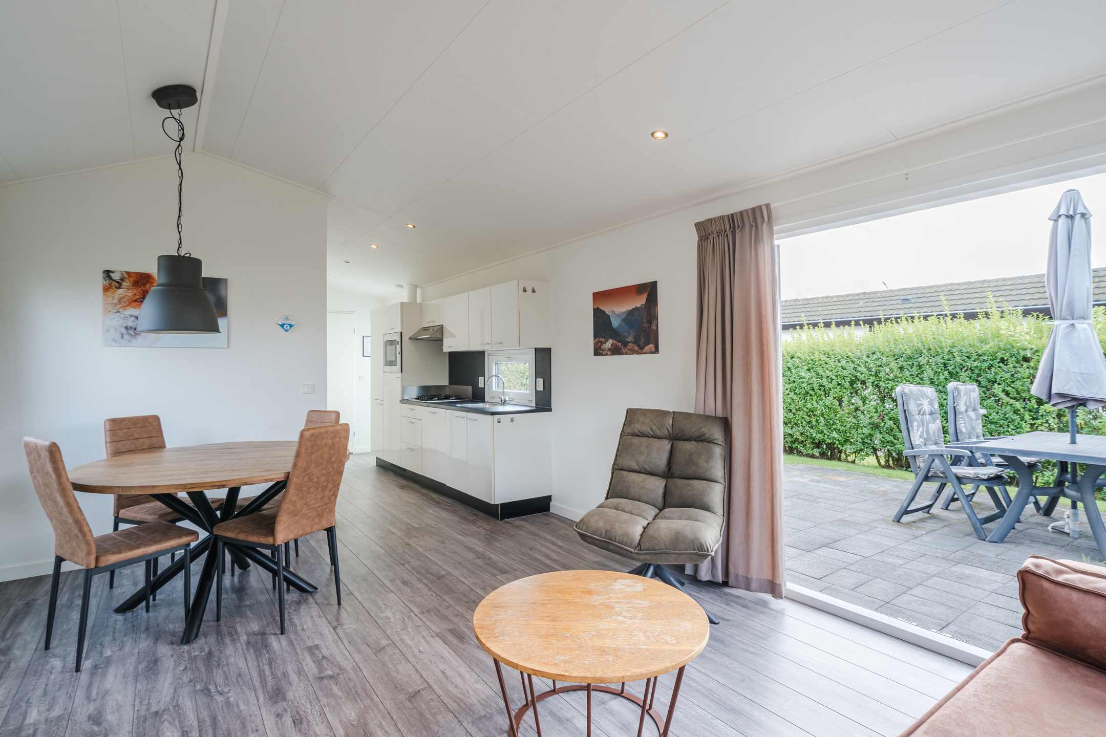 Het chalet is gezellig ingericht en beschikt over een lichte woonkamer met airco die zowel kan verwarmen als verkoelen en een open keuken, voorzien van inbouwapparatuur. Er zijn twee slaapkamers met in totaal vier slaapplaatsen. De badkamer is compact en praktisch ingericht. De onderhoudsarme kunststof gevels en kozijnen zorgen voor een lange levensduur. De tuin ligt op het zuidwesten, gunstig voor zonliefhebbers.