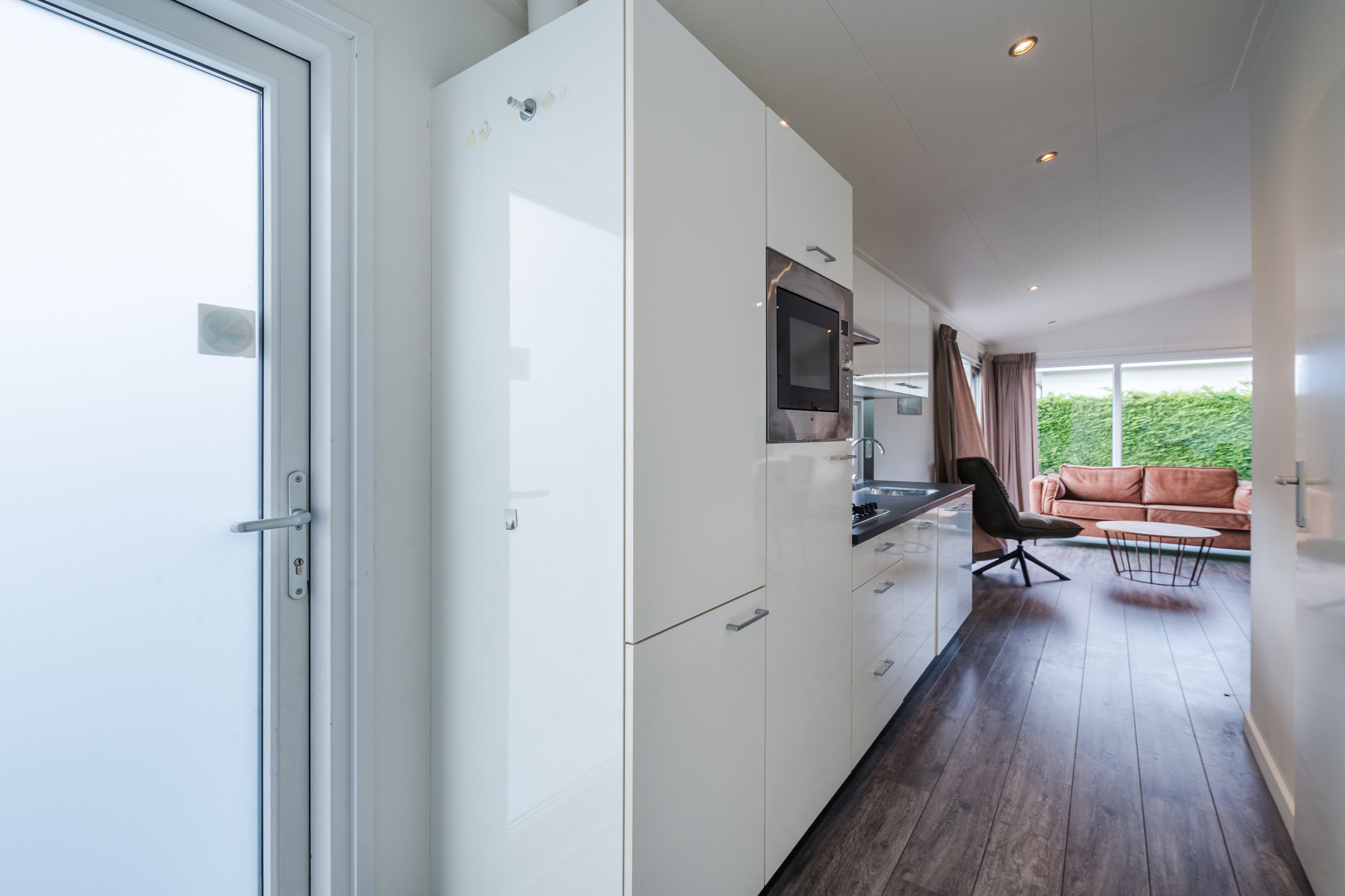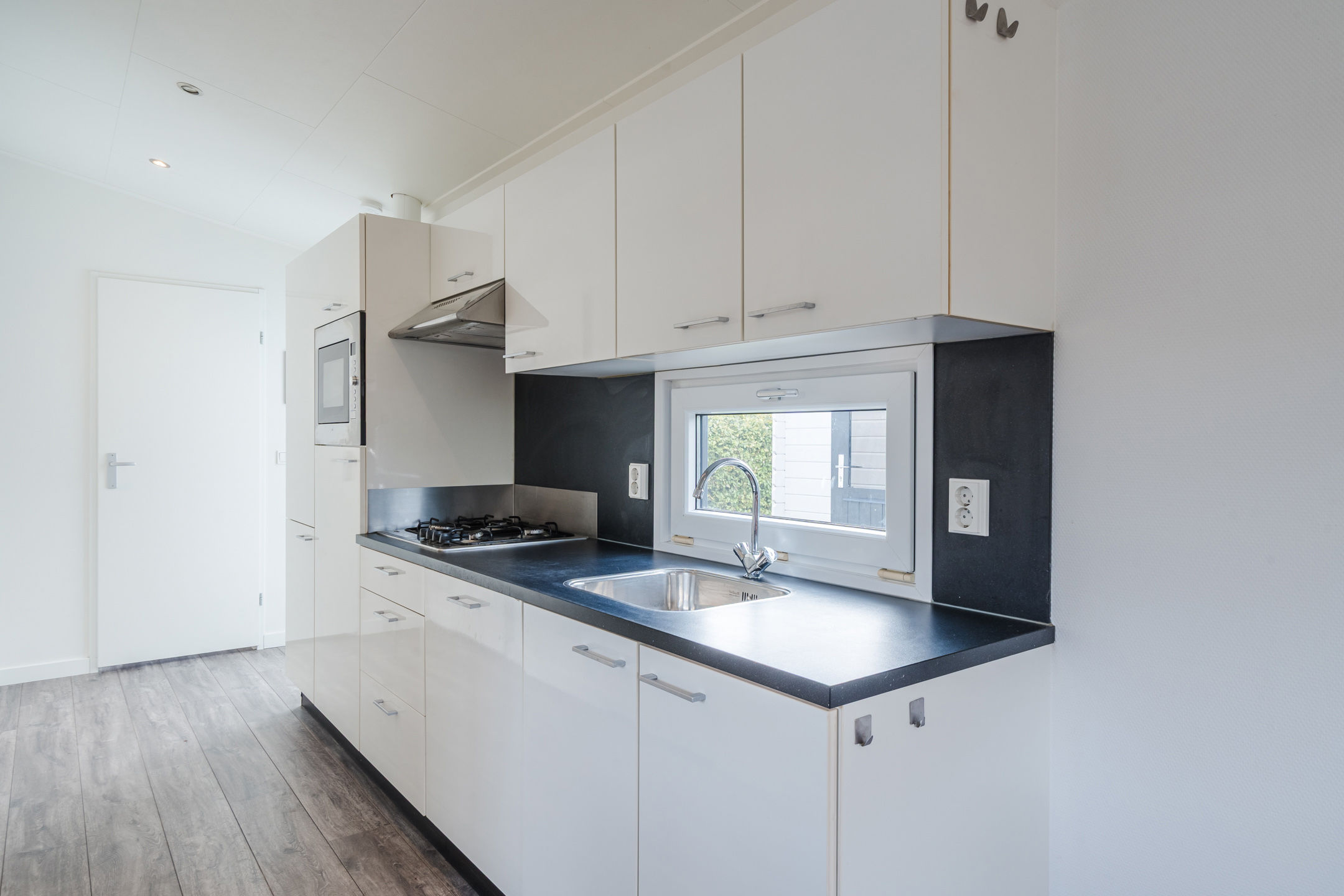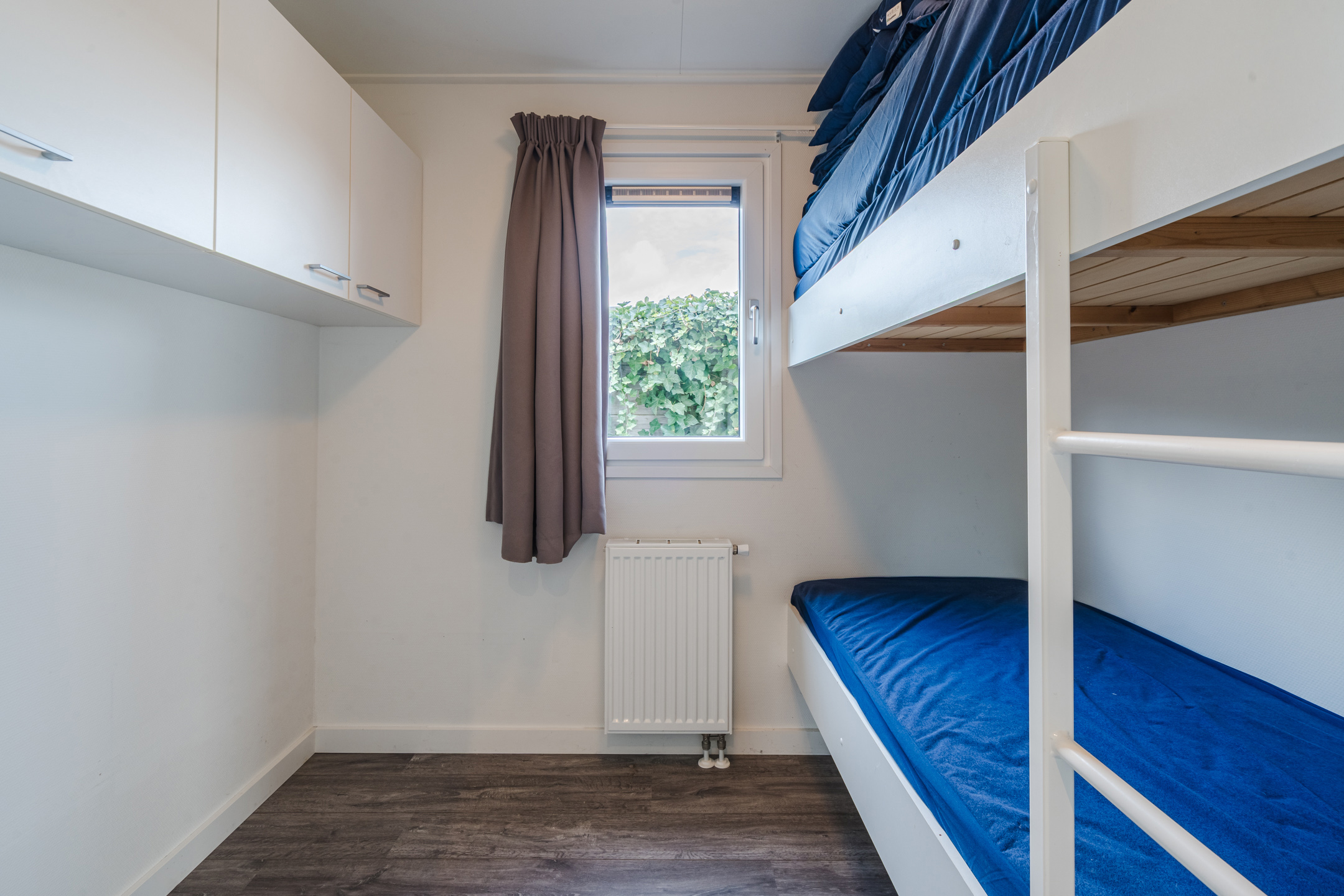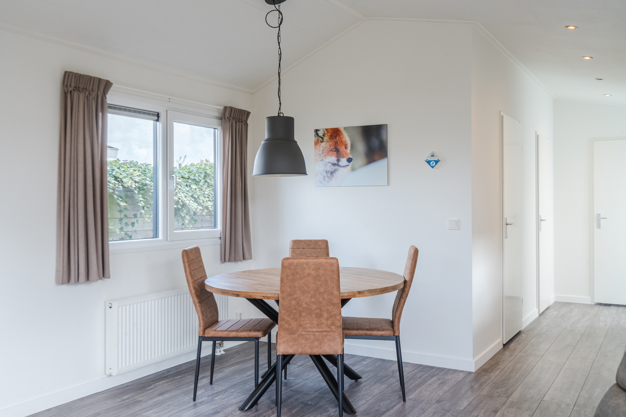 Het chalet is gezellig ingericht en beschikt over een lichte woonkamer met airco die zowel kan verwarmen als verkoelen en een open keuken, voorzien van inbouwapparatuur. Er zijn twee slaapkamers met in totaal vier slaapplaatsen. De badkamer is compact en praktisch ingericht. De onderhoudsarme kunststof gevels en kozijnen zorgen voor een lange levensduur. De tuin ligt op het zuidwesten, gunstig voor zonliefhebbers.