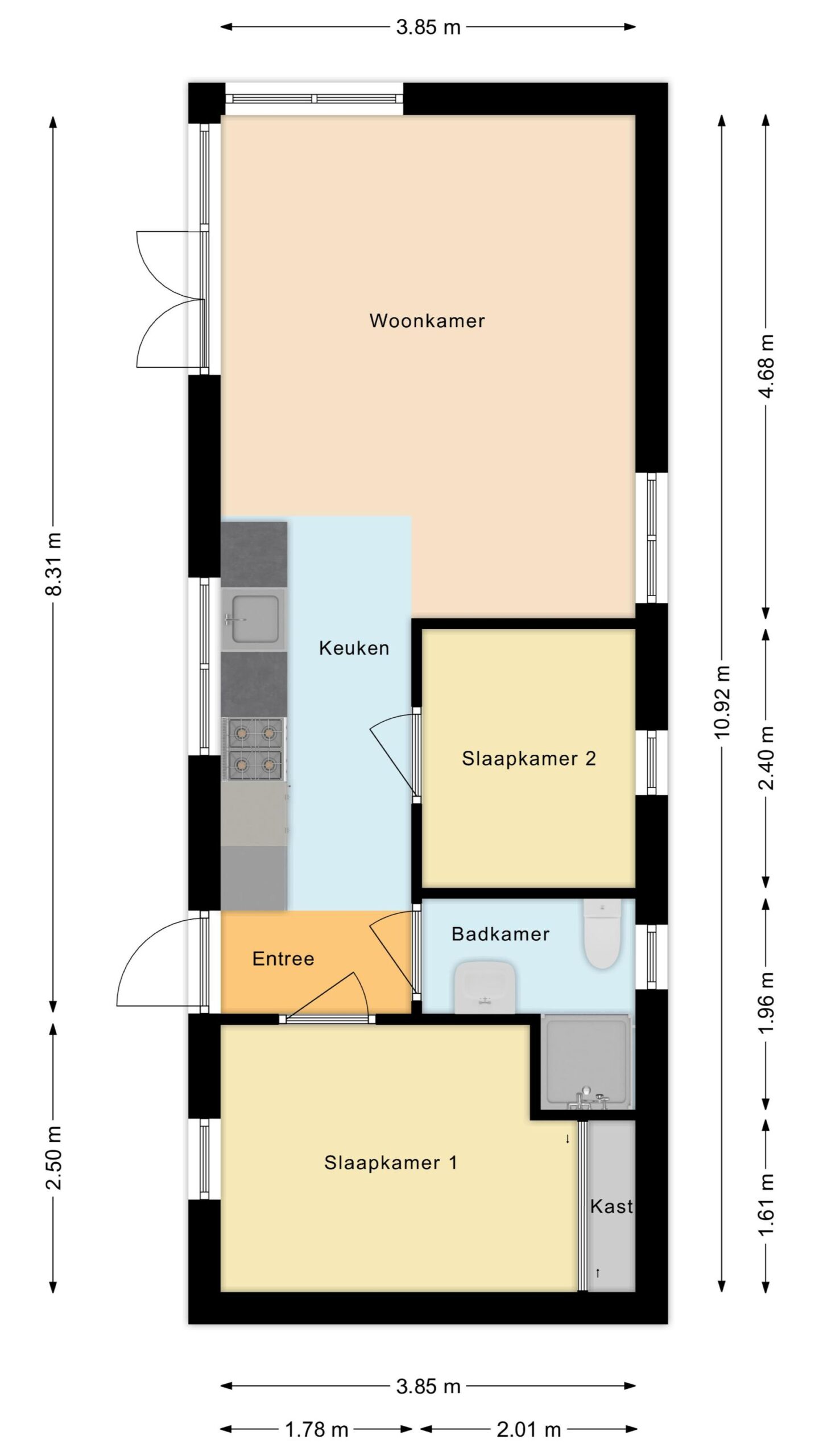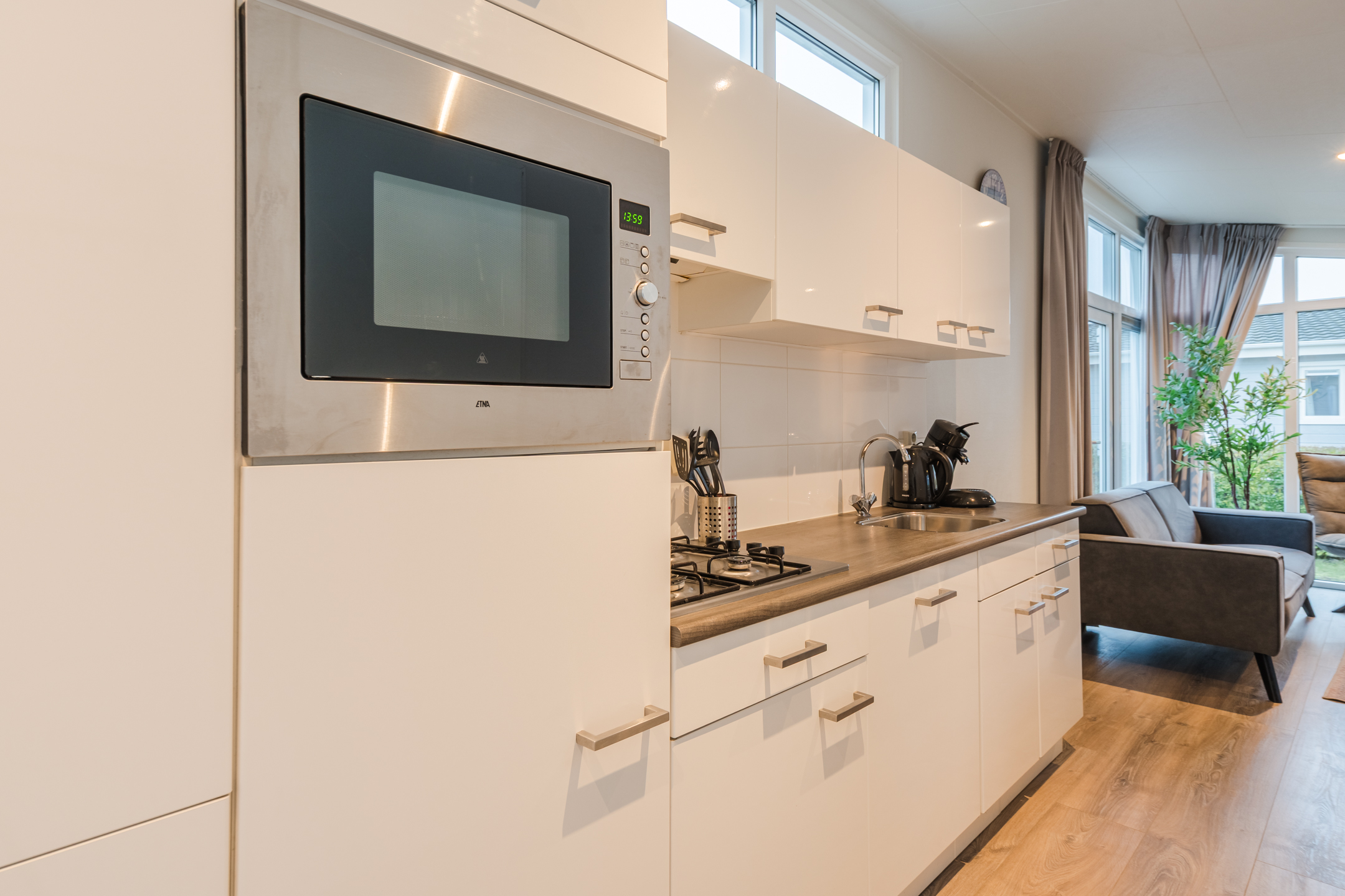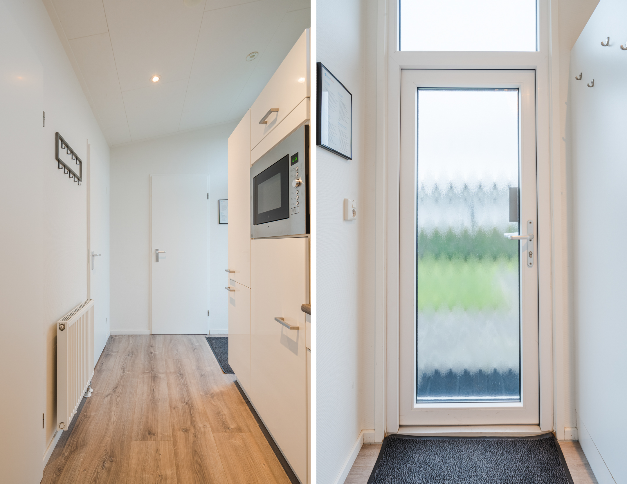 Via de entree kom je binnen in de lichte woonkamer, waar grote raampartijen zorgen voor een prettige verbinding met buiten. De open keuken is praktisch ingericht en van alle gemakken voorzien.
