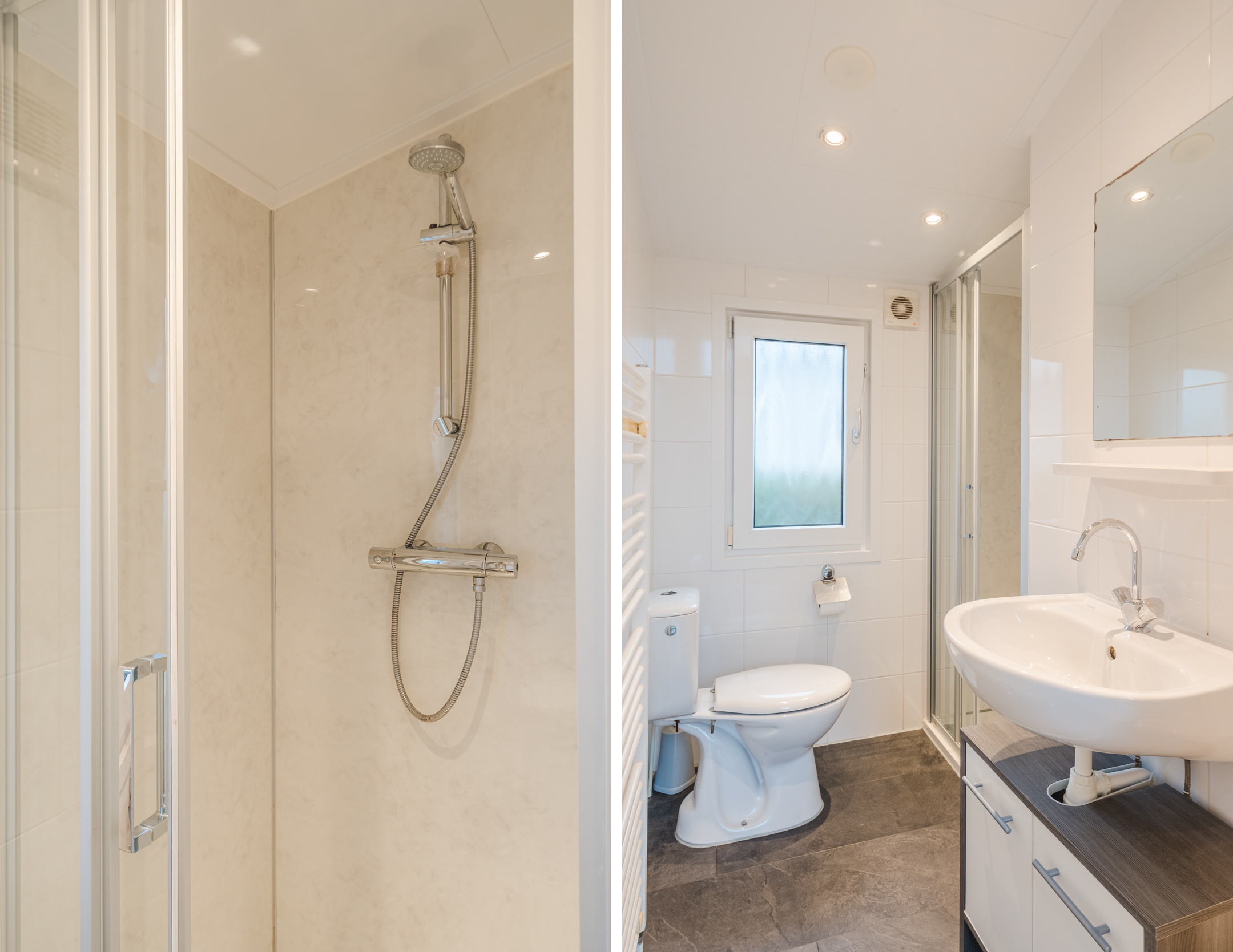 - Badkamervoorzieningen Toilet, douche, wastafel