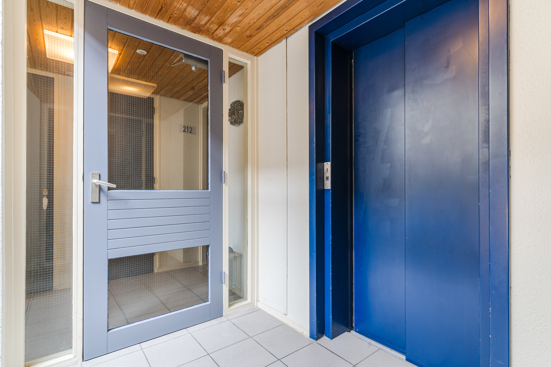 Verzorgde centrale entree met toegang tot het trappenhuis, de lift en de bergingen.