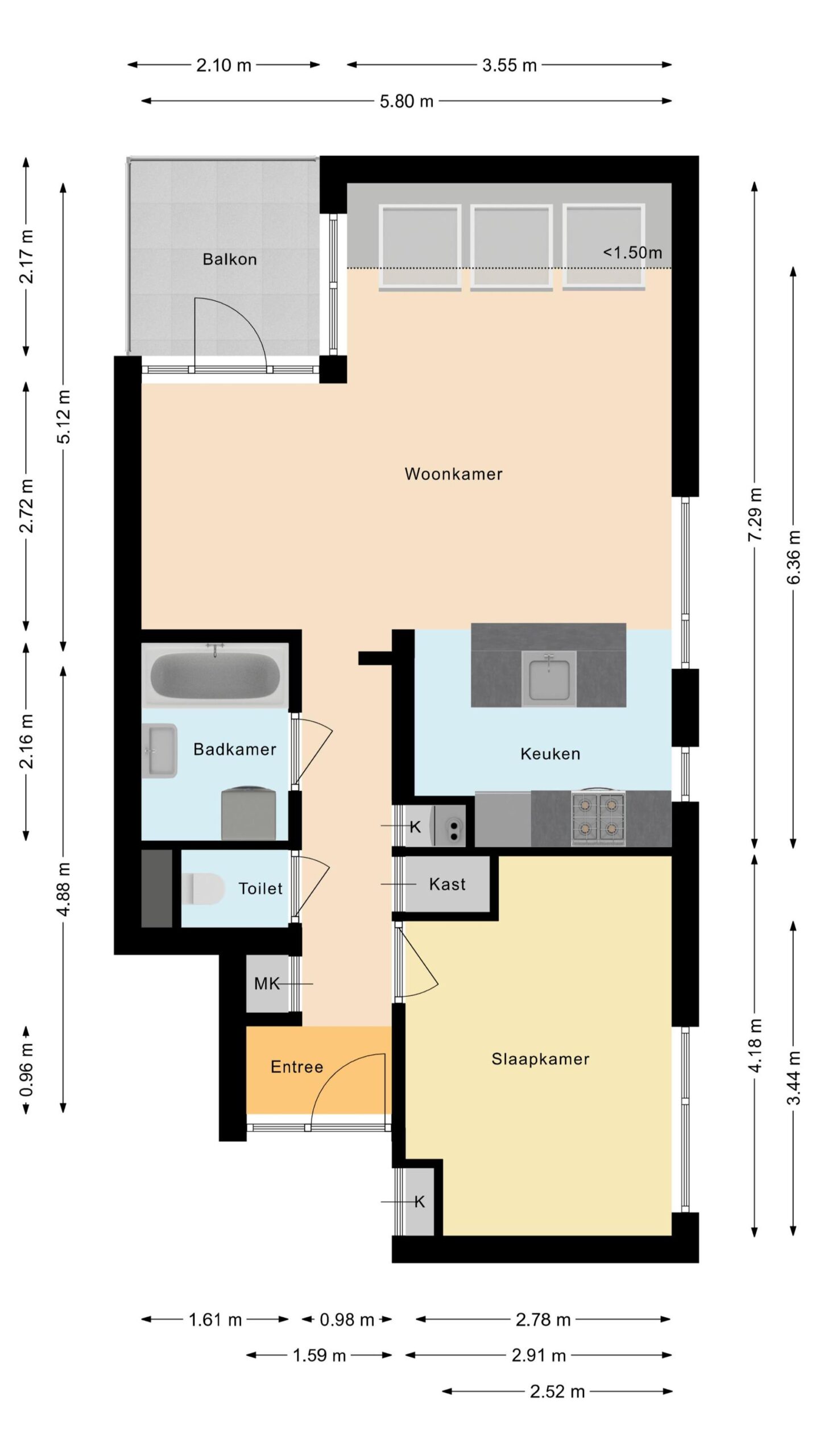 - Aantal slaapkamers 1 slaapkamer