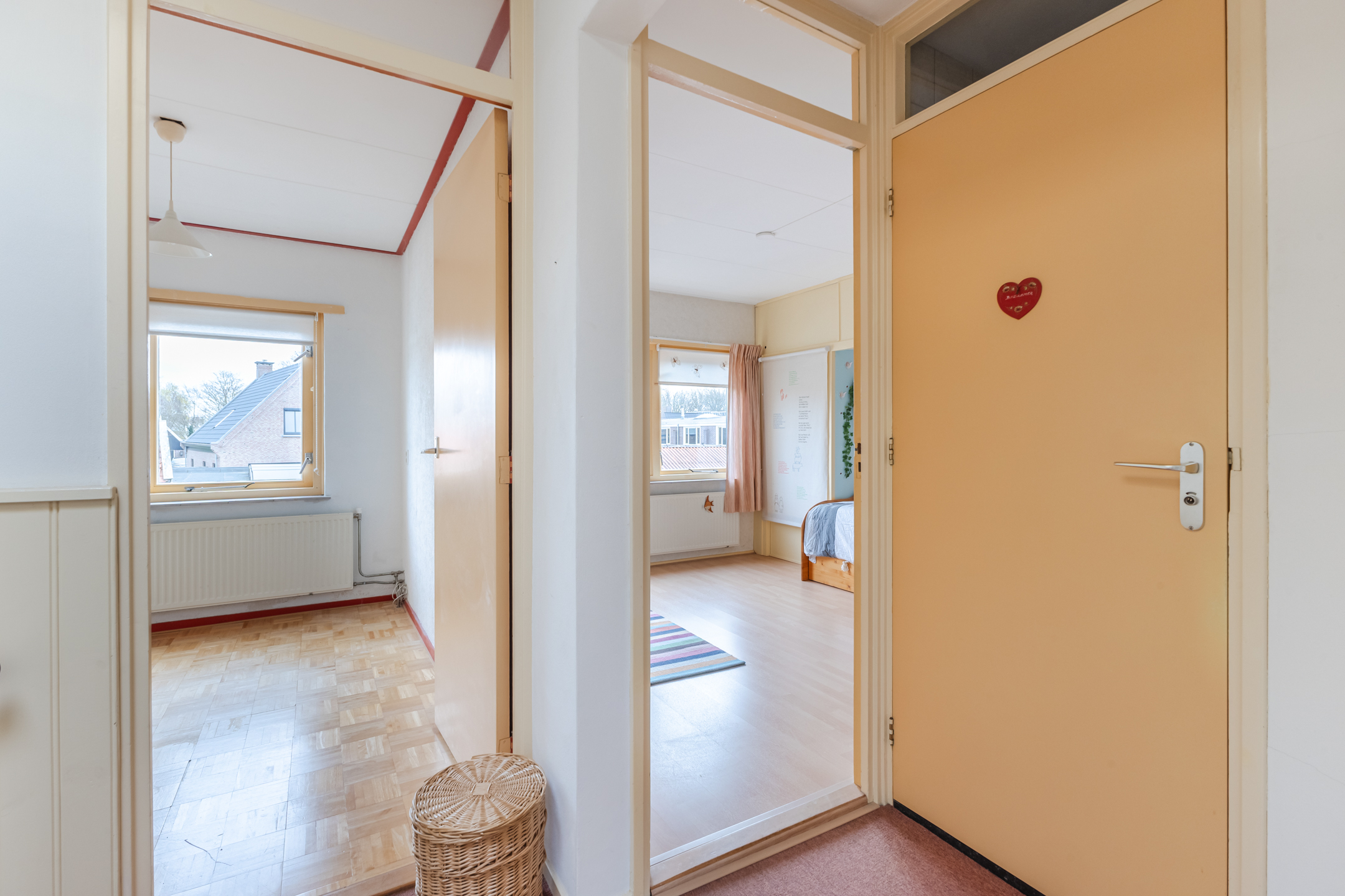 1e verdieping: overloop, 3 slaapkamers, badkamer.