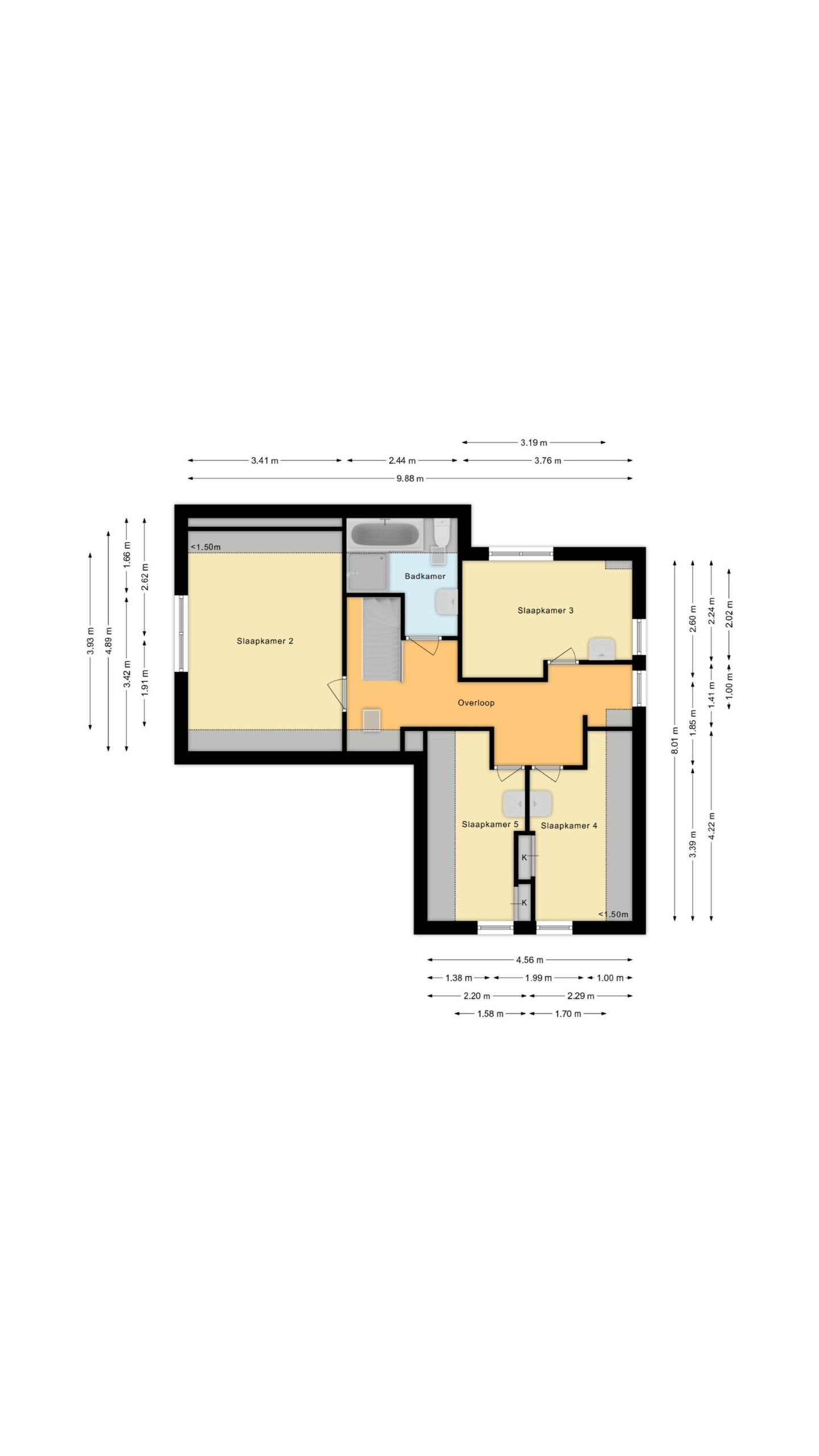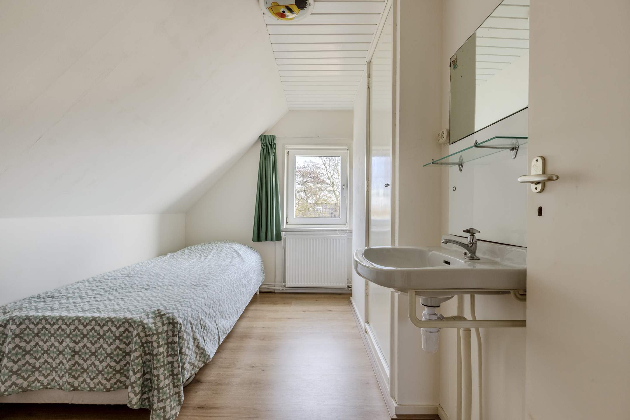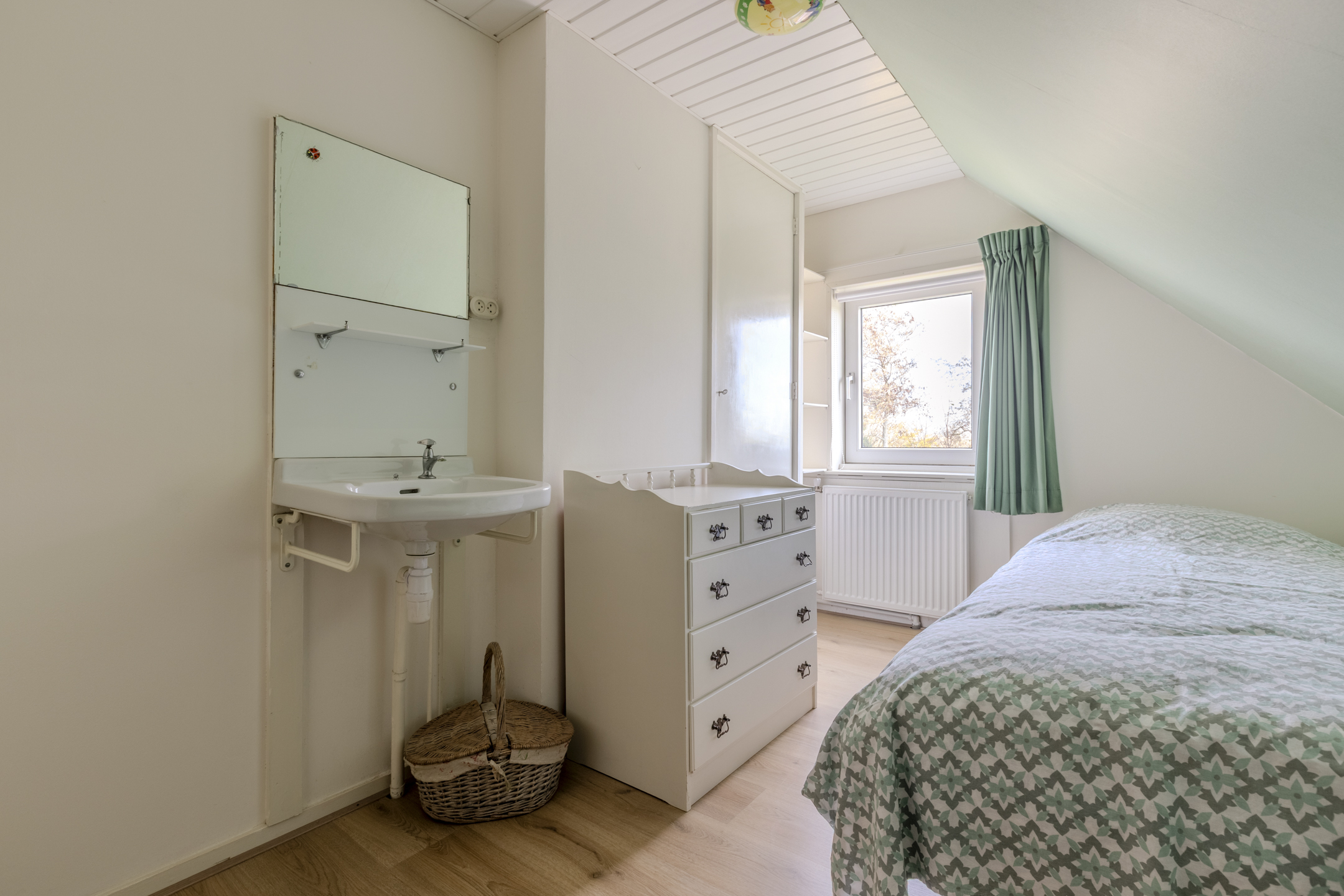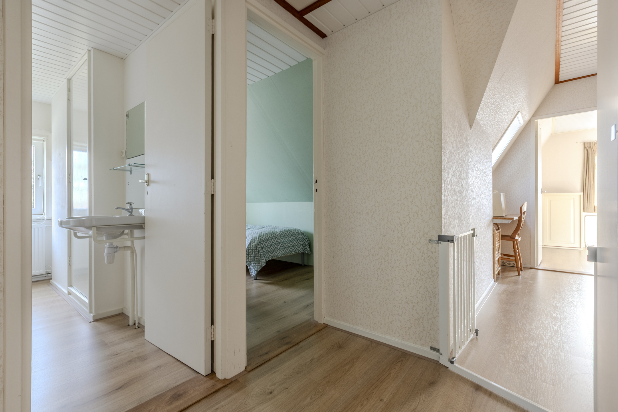 De eerste verdieping telt maar liefst vier slaapkamers, waarvan drie met een eigen wastafel — een fijne luxe voor gezinnen of logees. De badkamer is functioneel maar gedateerd; perfect voor kopers die graag hun eigen stijl en comfort willen toevoegen.