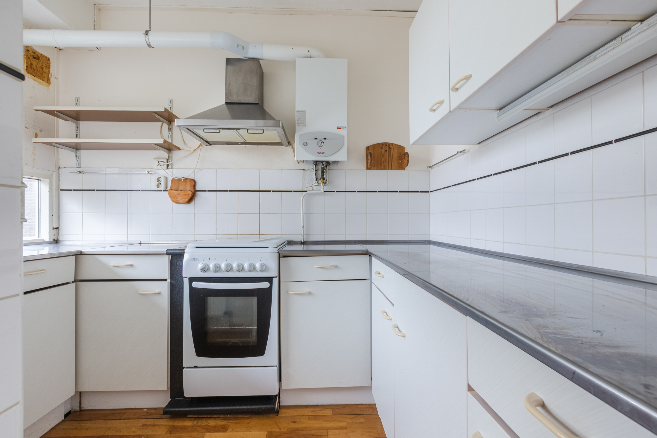 De basis is goed: aan de voorkant houten en aan de achterkant kunststof kozijnen met isolerende beglazing, een houten plankenvloer en een praktische indeling met twee slaapkamers, een keuken en badkamer.