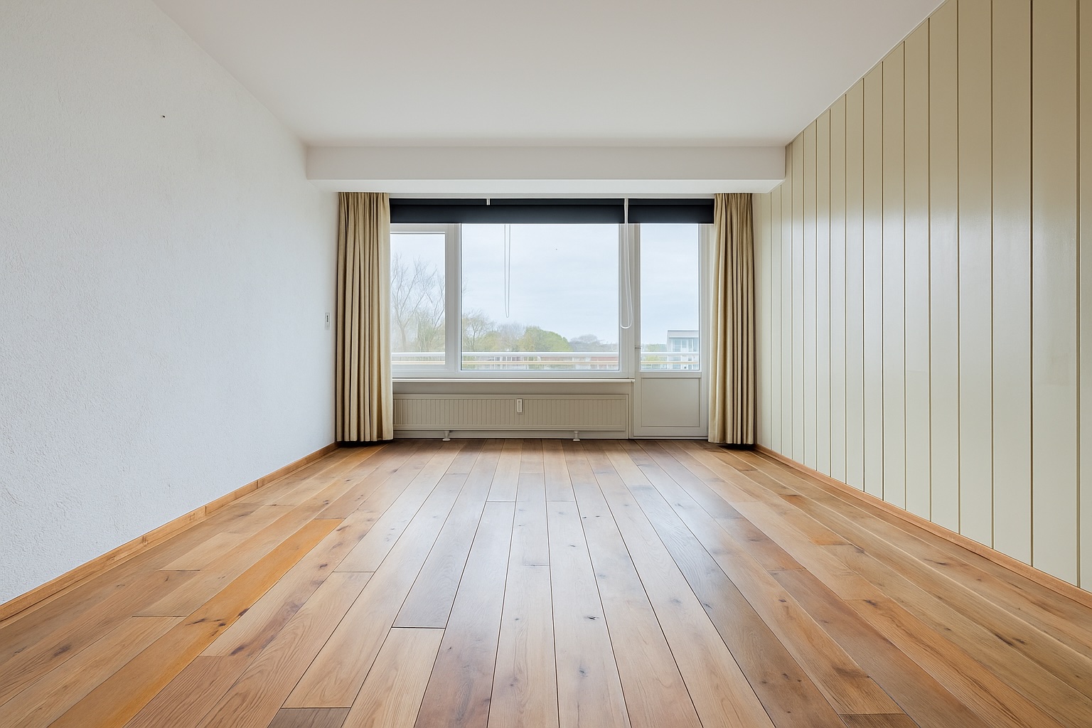 Zodra u binnenstapt, voelt u de ruimtelijke indeling en het vele daglicht dat dit appartement zo prettig maakt. De woonkamer met grote raampartijen biedt een vrij uitzicht over de gezellige winkelcentrum en verbindt direct met het balkon op het zonnige zuidwesten. Hier geniet u de hele dag van de zon — van uw eerste kop koffie tot het laatste avondzonnetje.