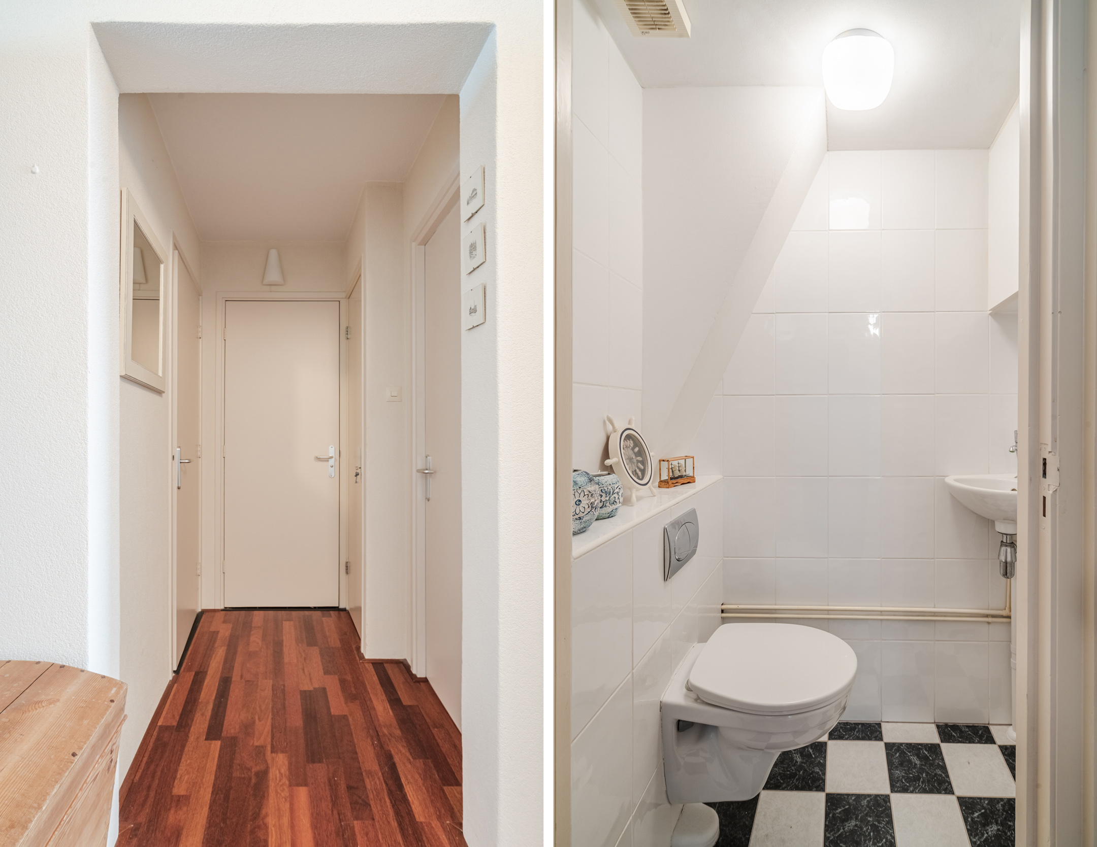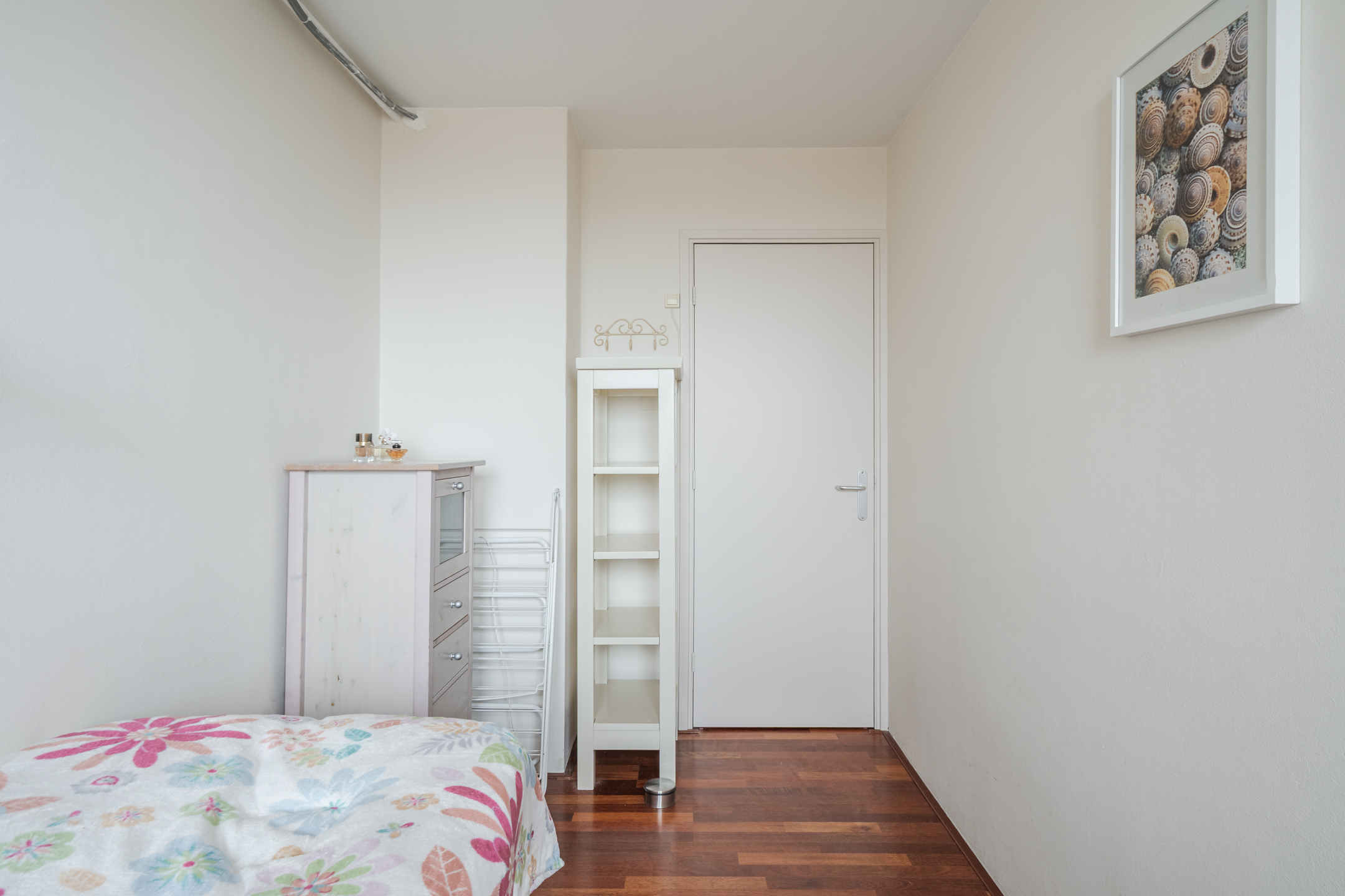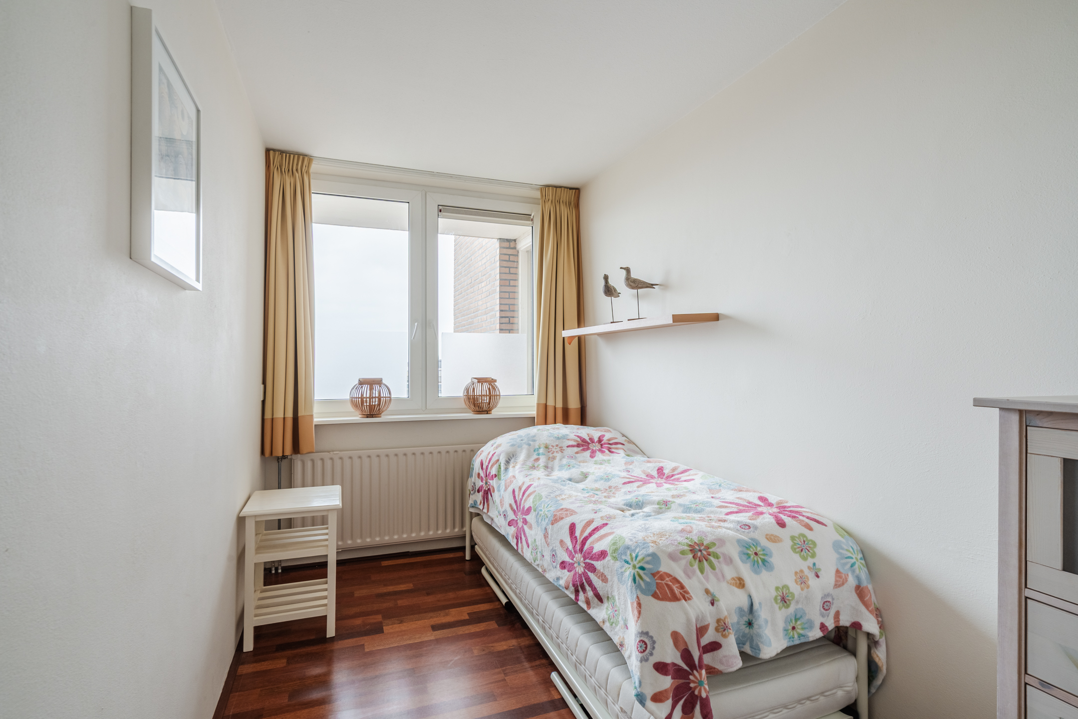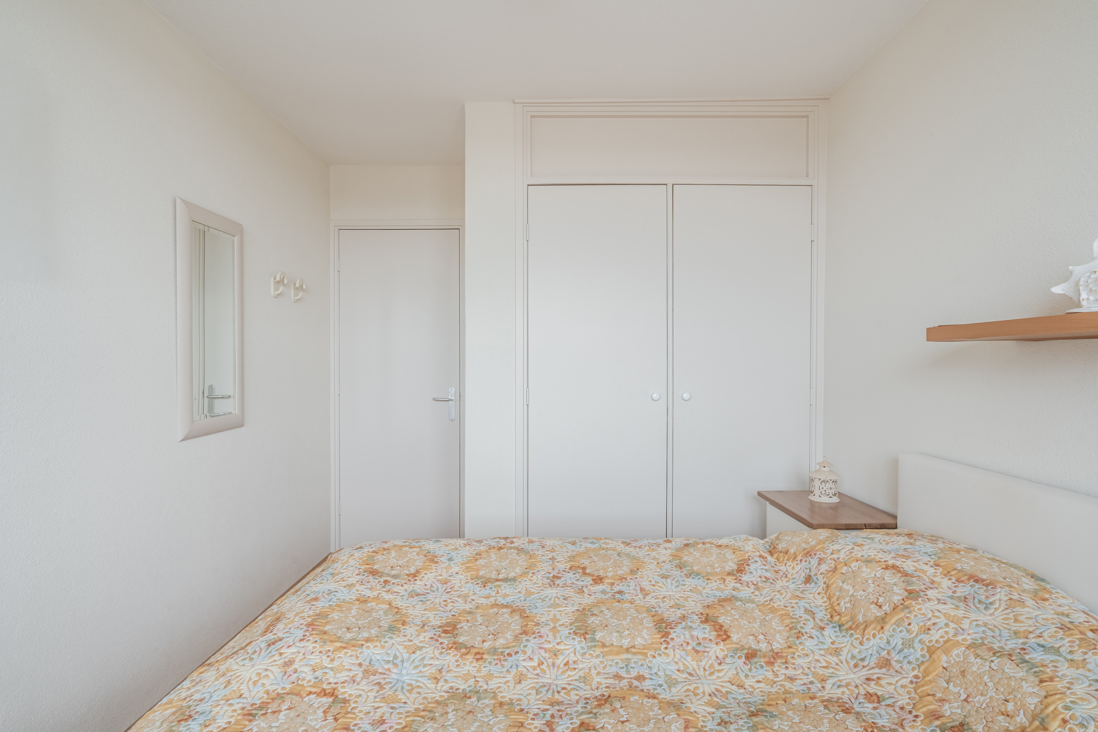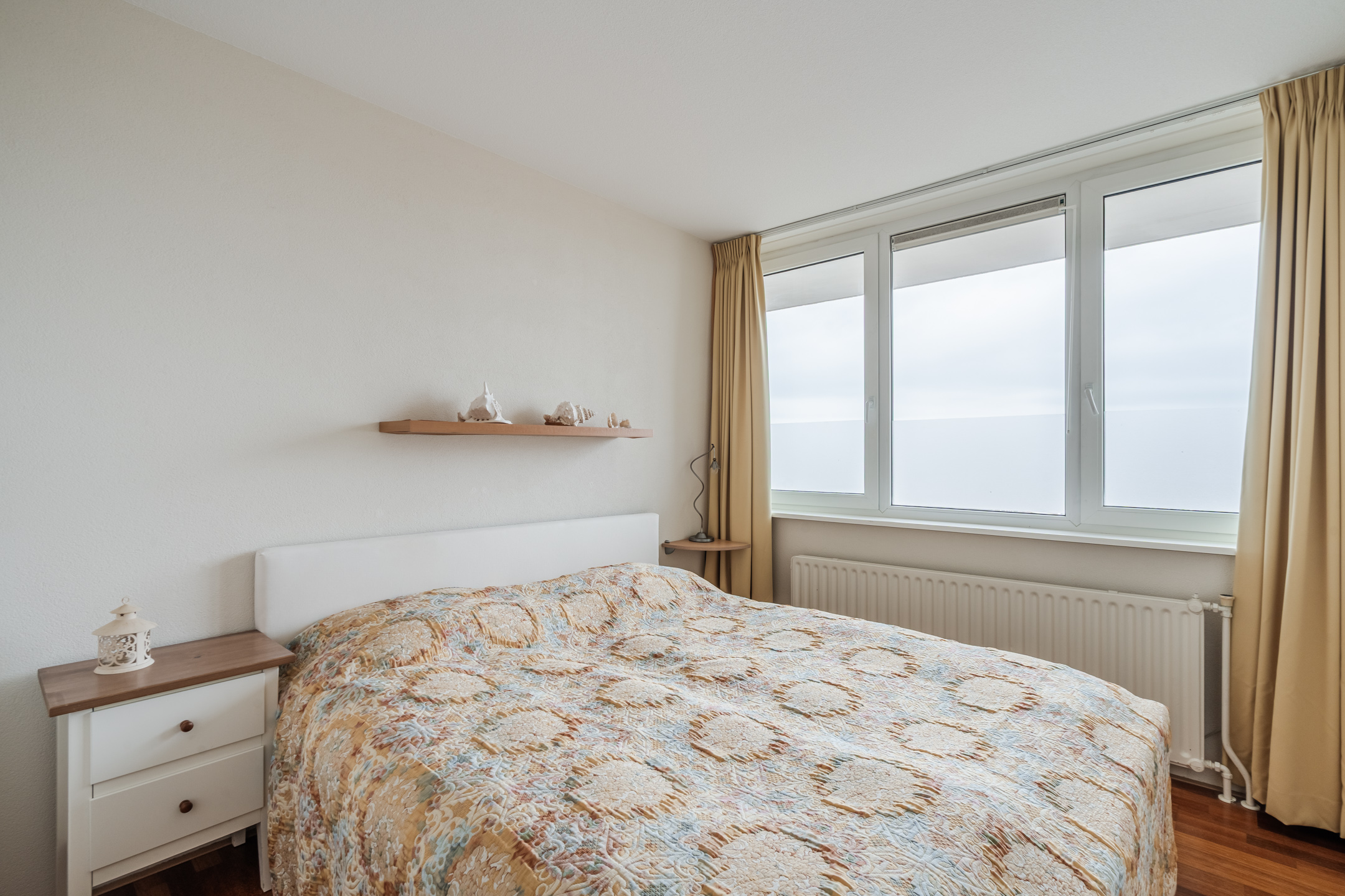 Verder beschikt het appartement over twee slaapkamers, een badkamer met douche, wastafelmeubel en wasmachineaansluiting. Via een vast kozijn met openslaande deuren komt u op het doorlopende zonneterras van waaruit u het panoramische uitzicht heeft. In de onderbouw bevindt zich bovendien een praktische berging, ideaal voor fietsen en strandspullen.