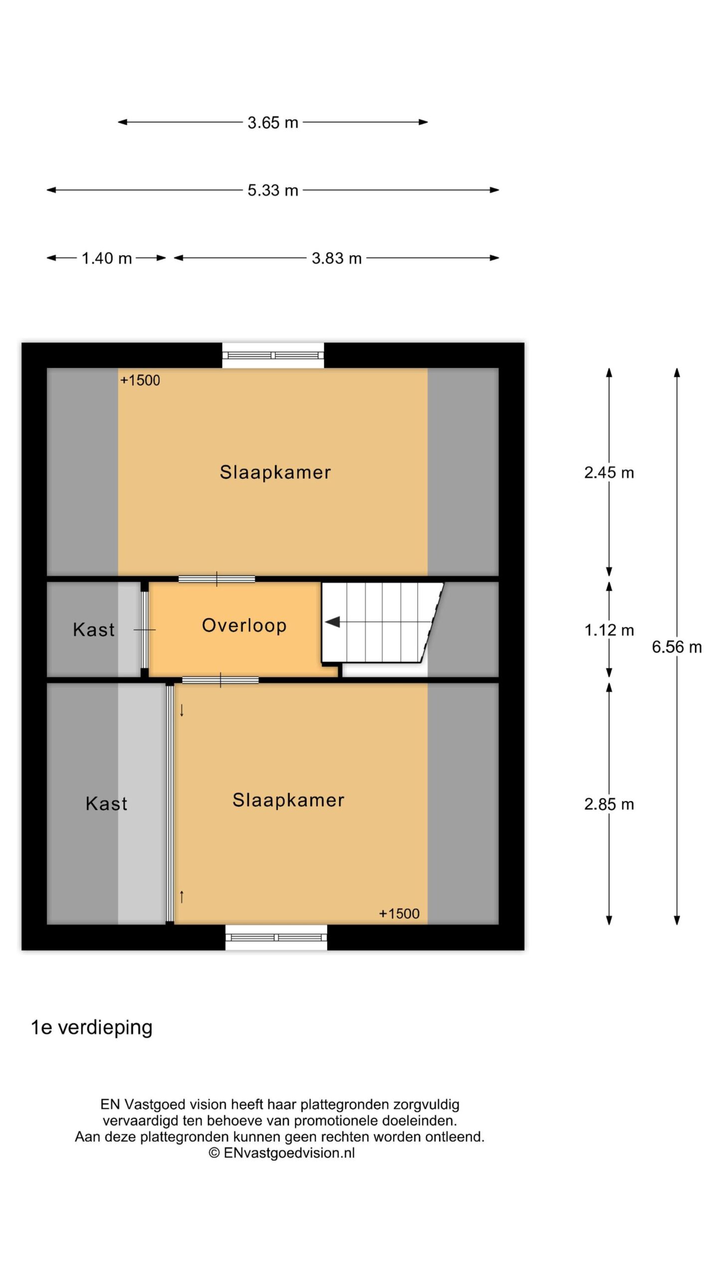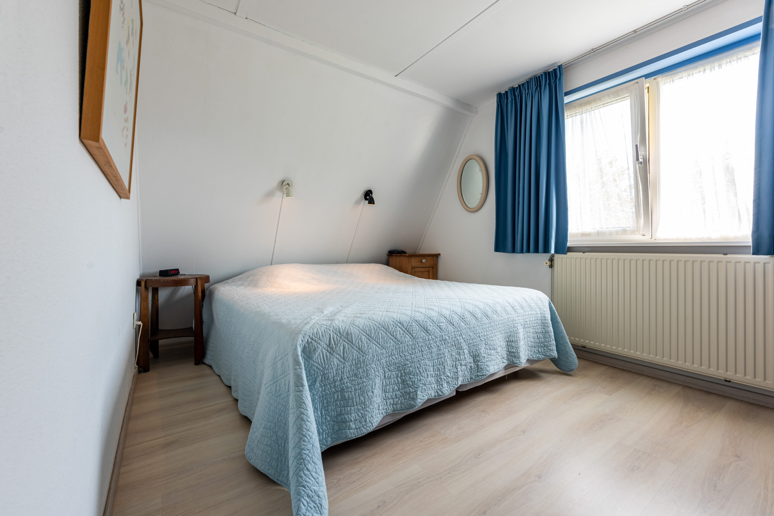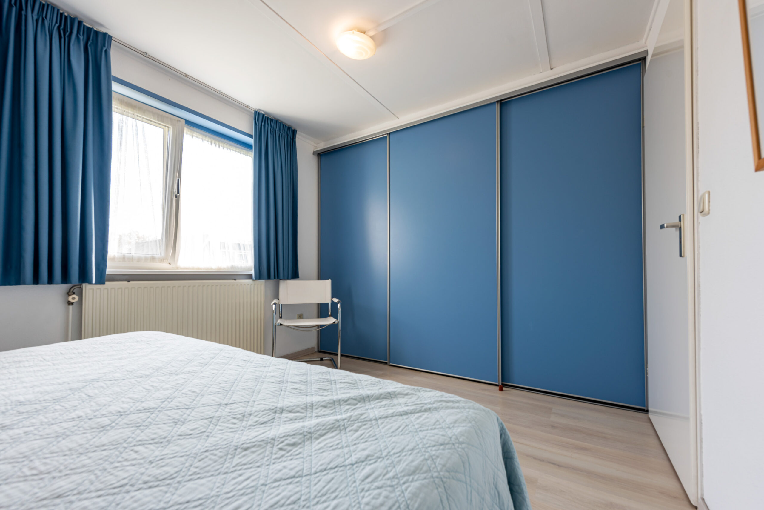 Op de verdieping bevinden zich twee slaapkamers waarvan de grootste kamer een vaste schuifkast heeft. Verder is er nog een handige bergkast.