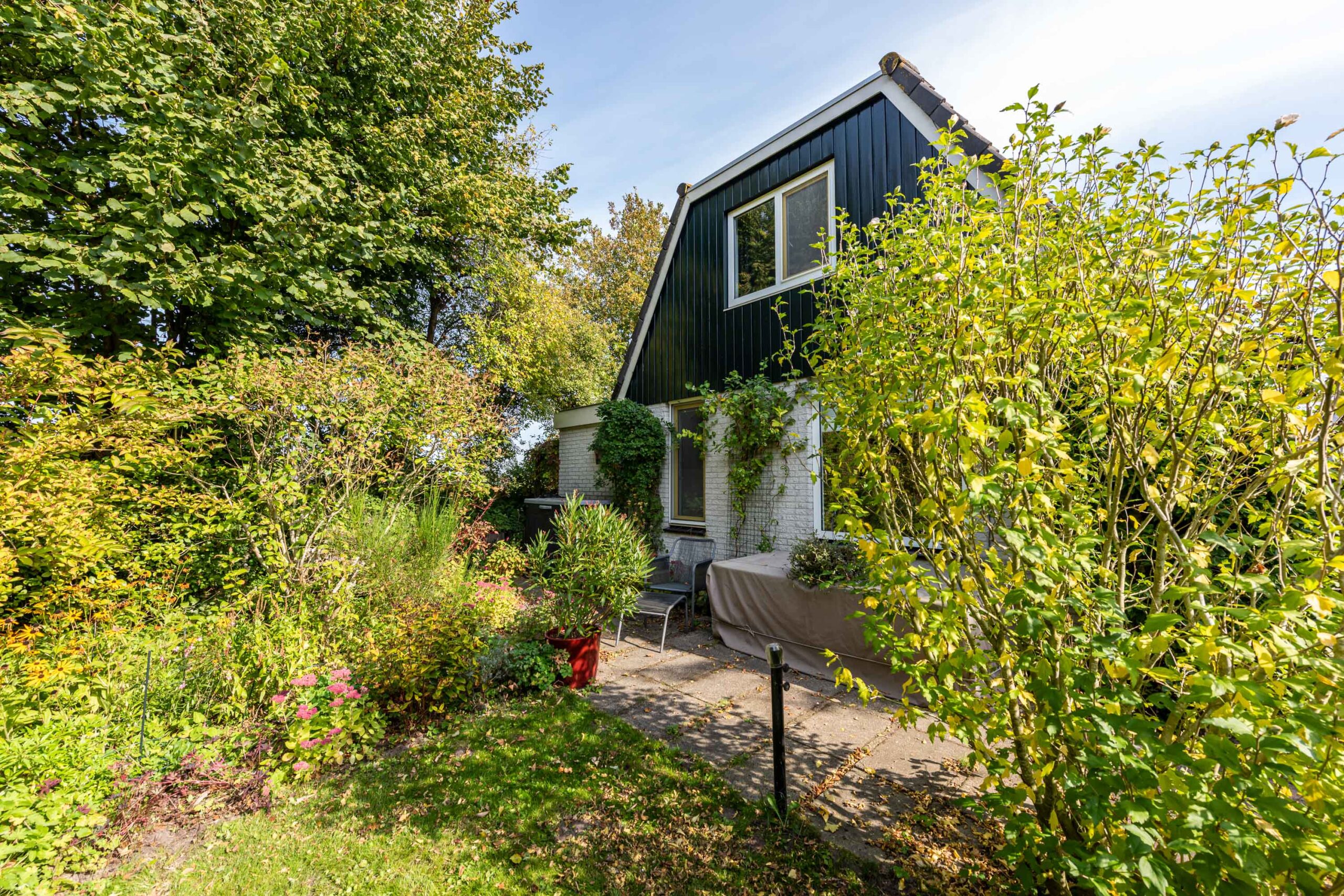 – Ruime kavel met zonnige en schaduwrijke plekken, tuin rondom