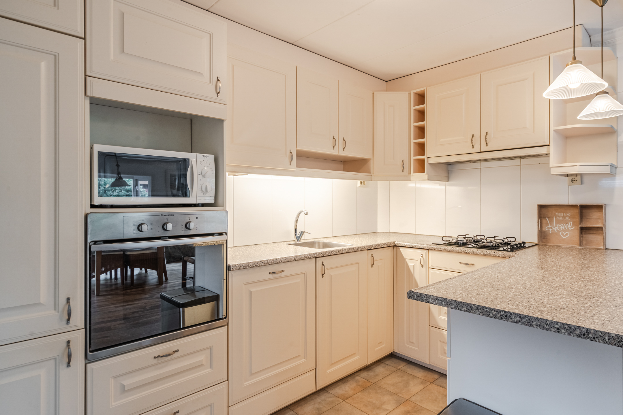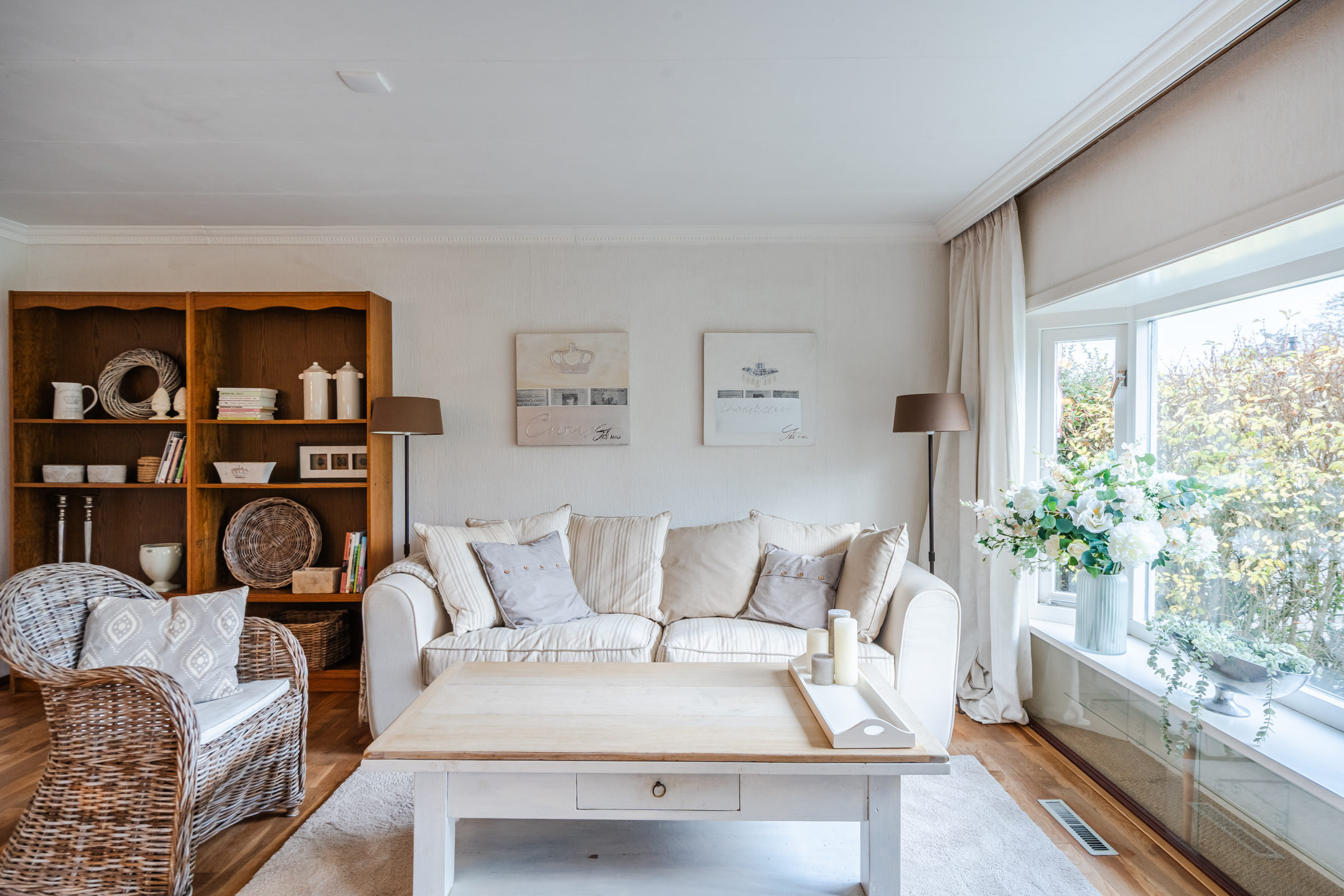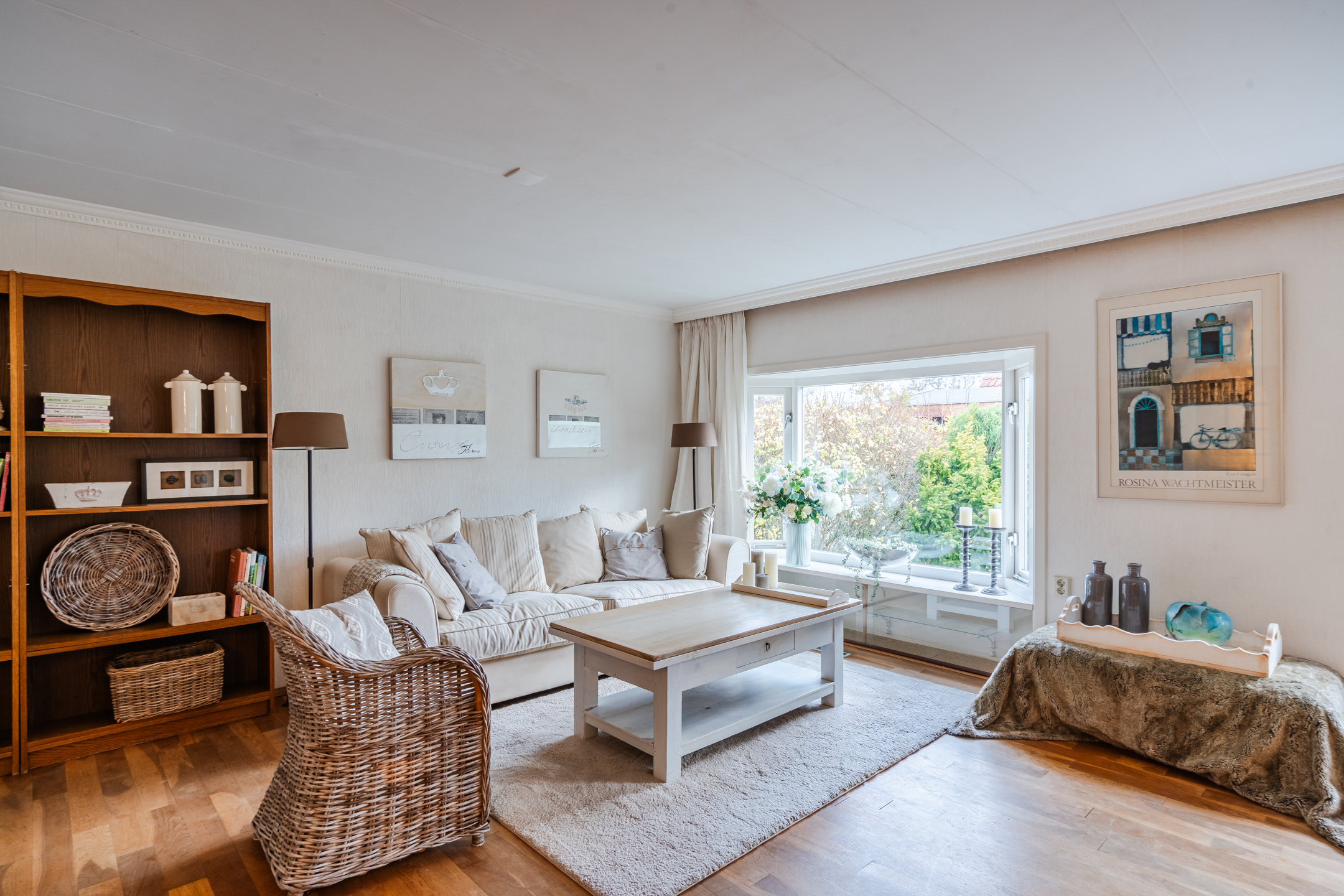 De woonkamer is dankzij de twee erkers heerlijk licht en straalt direct een warme, uitnodigende sfeer uit. Vanuit de grote veranda stap je zo naar binnen: een fijne plek om van vroeg in het voorjaar tot laat in de avond te genieten van buiten. De tuin omsluit de bungalow volledig en biedt altijd een plekje om in de zon of juist in de schaduw te zitten.