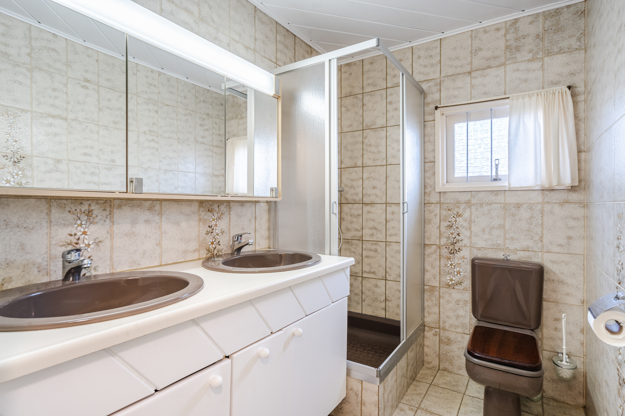 - Badkamervoorzieningen Toilet, douche, dubbele wastafel