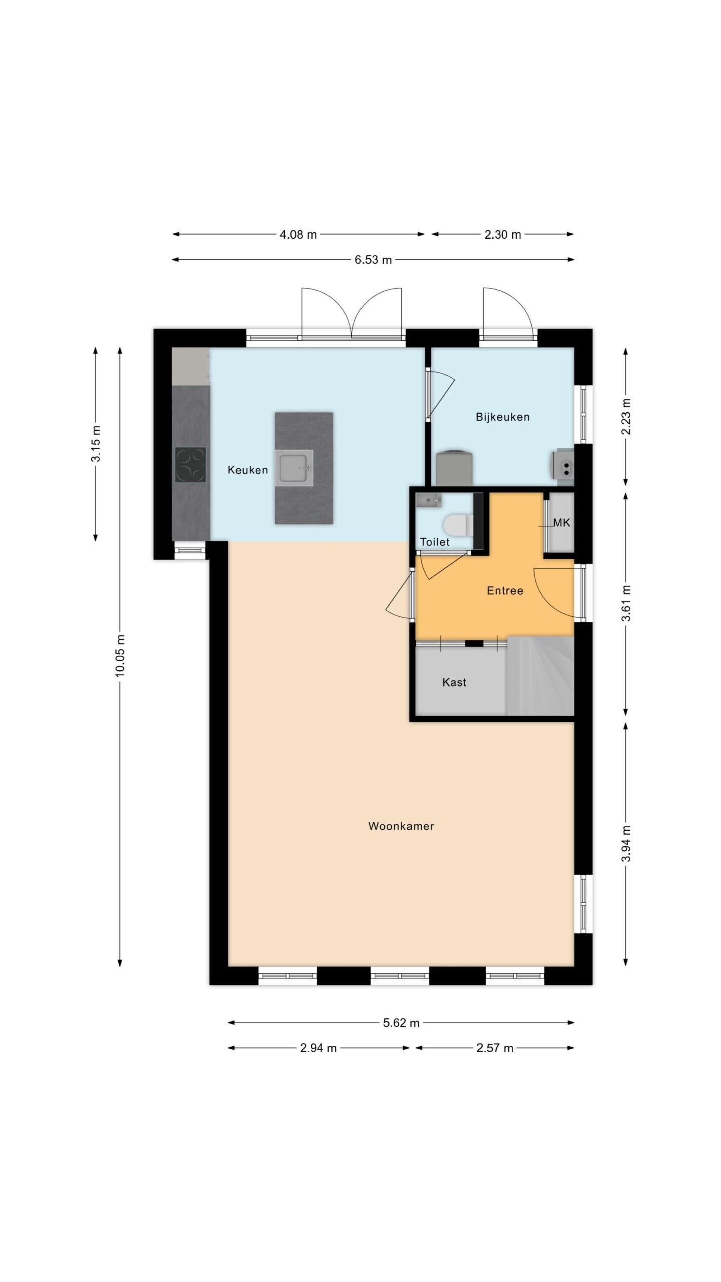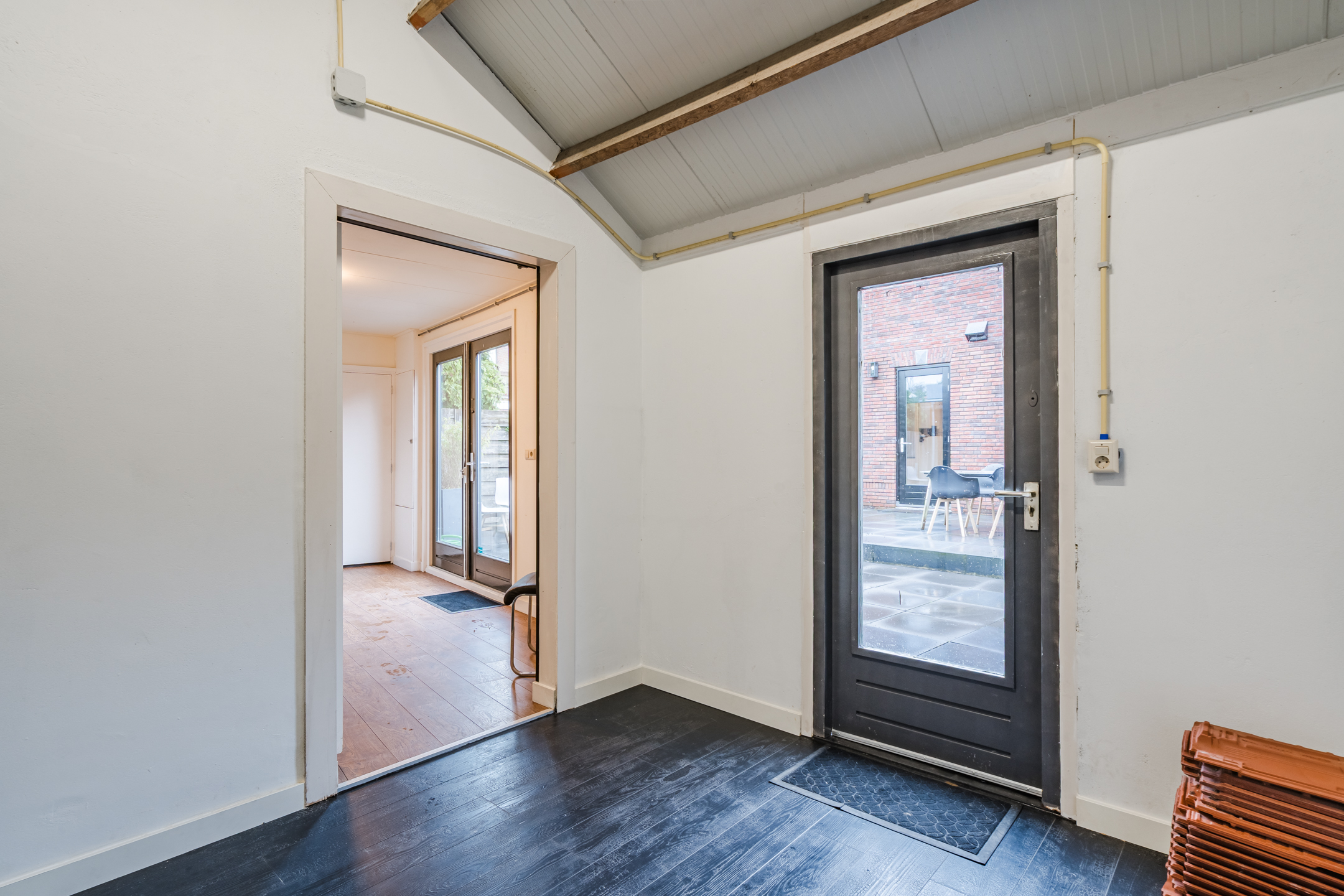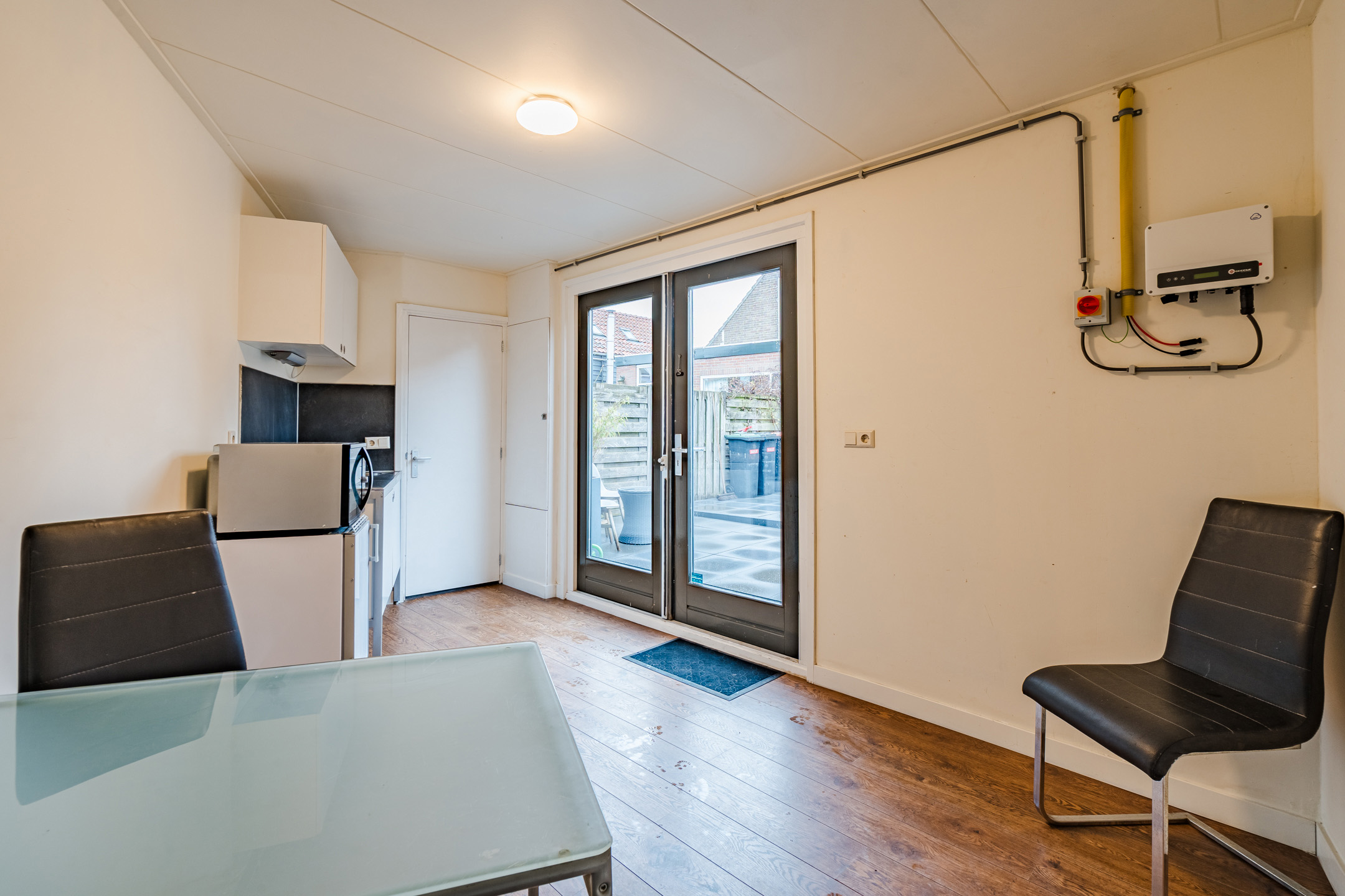 Aangrenzend vind je de bijkeuken, met wasmachineaansluiting en praktische doorgang naar de tuin.