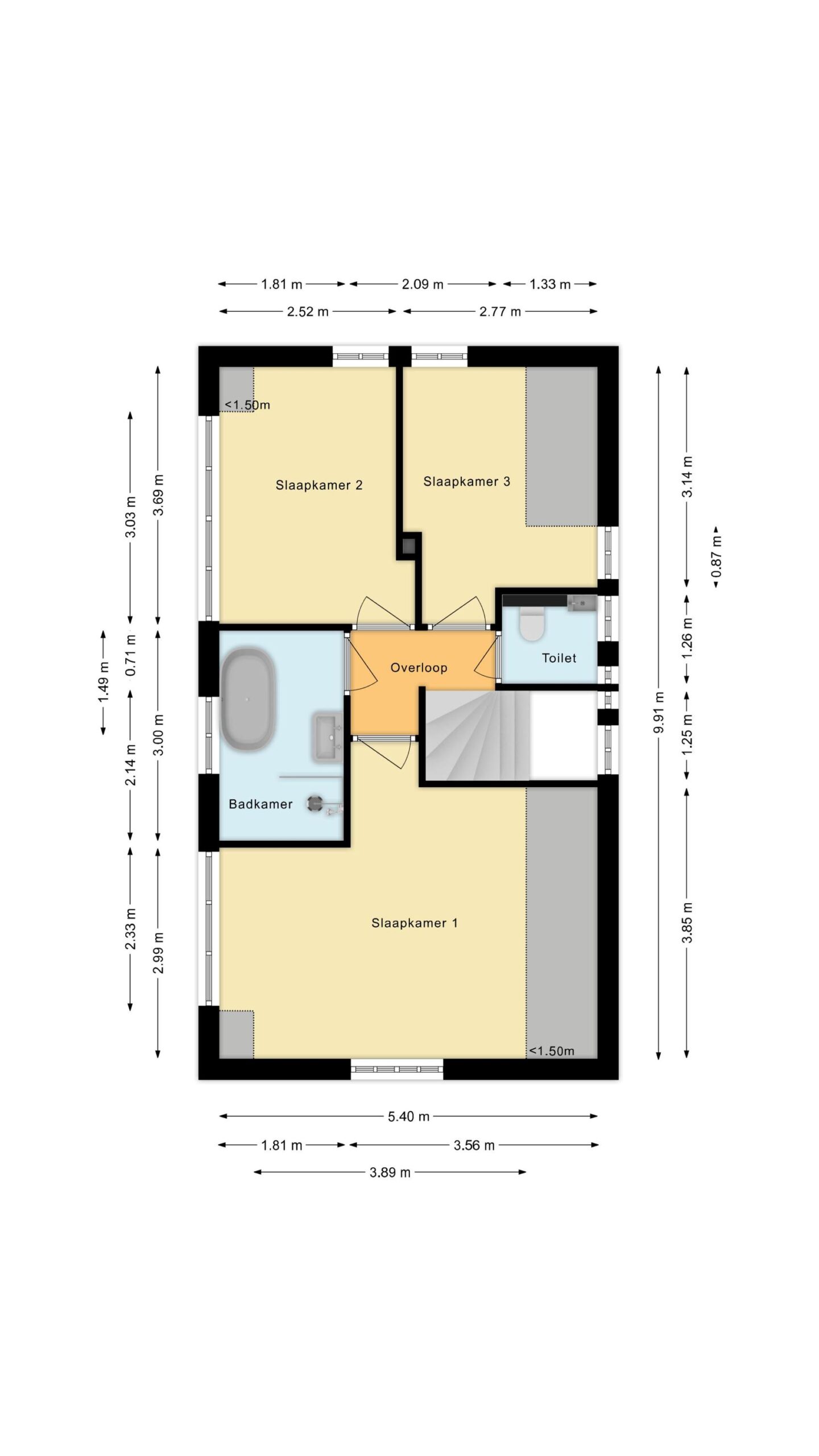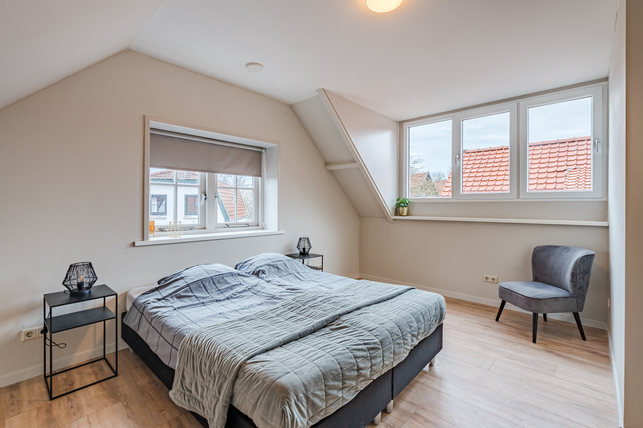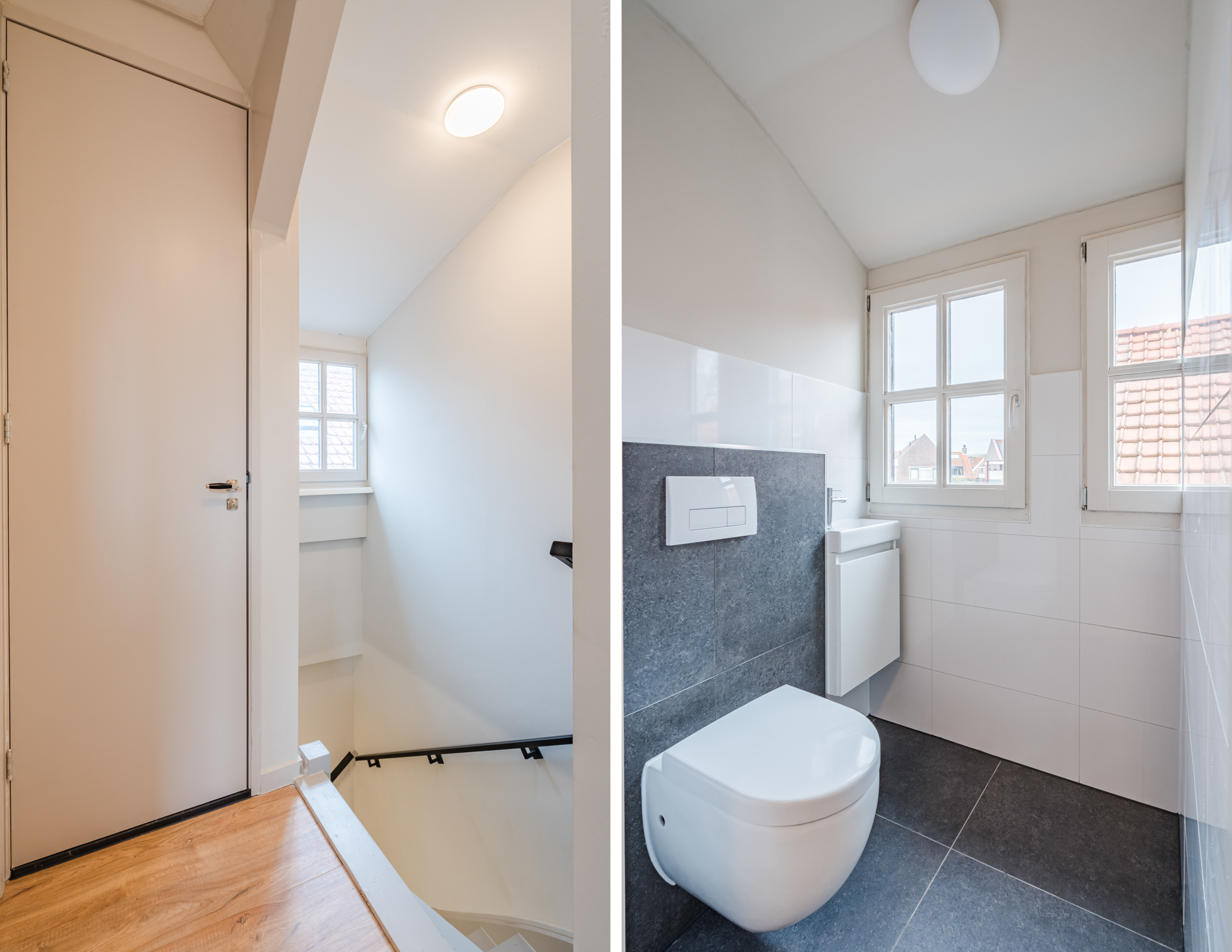 De eerste verdieping is, mede dankzij de dakkapel over de volledige diepte van het huis, verrassend ruim. Hier bevinden zich drie sfeervolle slaapkamers en een luxe badkamer met ligbad, inloopdouche en dubbele wastafel. Een separaat toilet maakt het sanitair compleet.