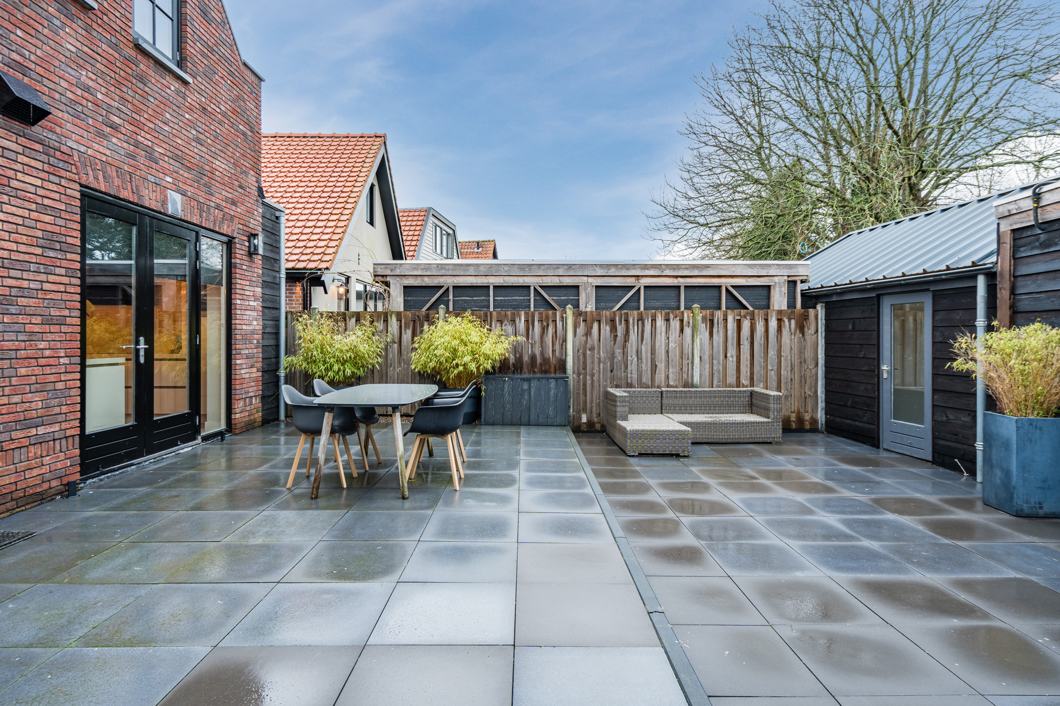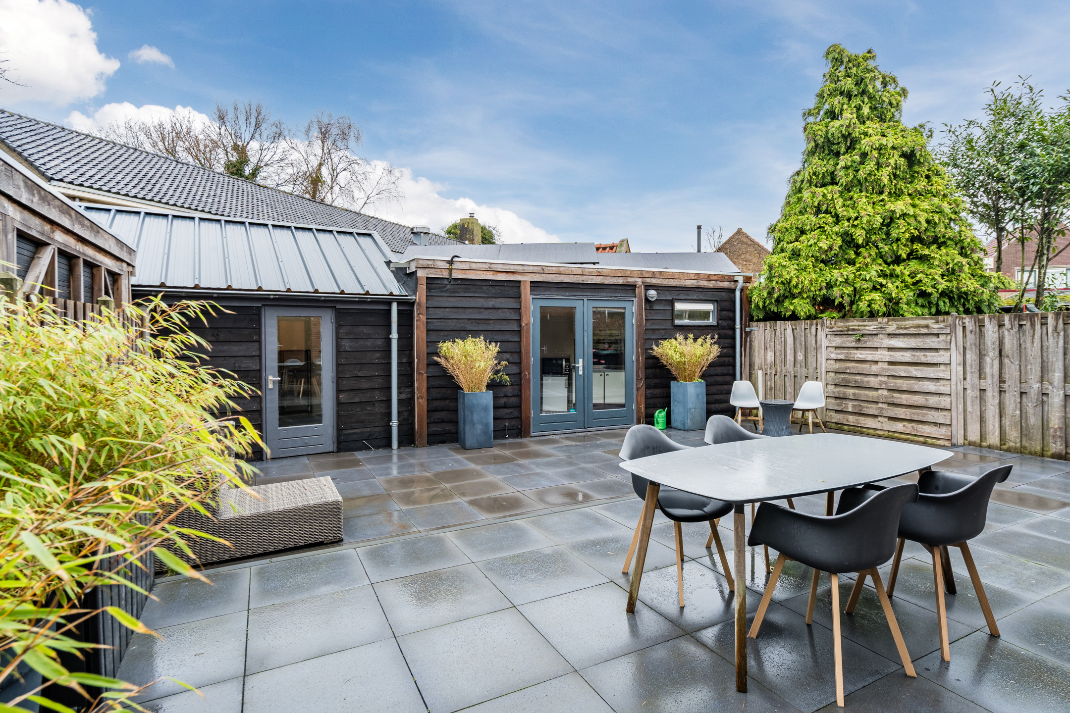 De tuin is ruim, verzorgd en biedt volop privacy. In de tuin bevindt zich ook de riante berging en een bijzonder bijgebouw met toilet, perfect als praktijkruimte, kantoor of aan-huis-gebonden beroep. Een unieke kans voor wie wonen en werken wil combineren.