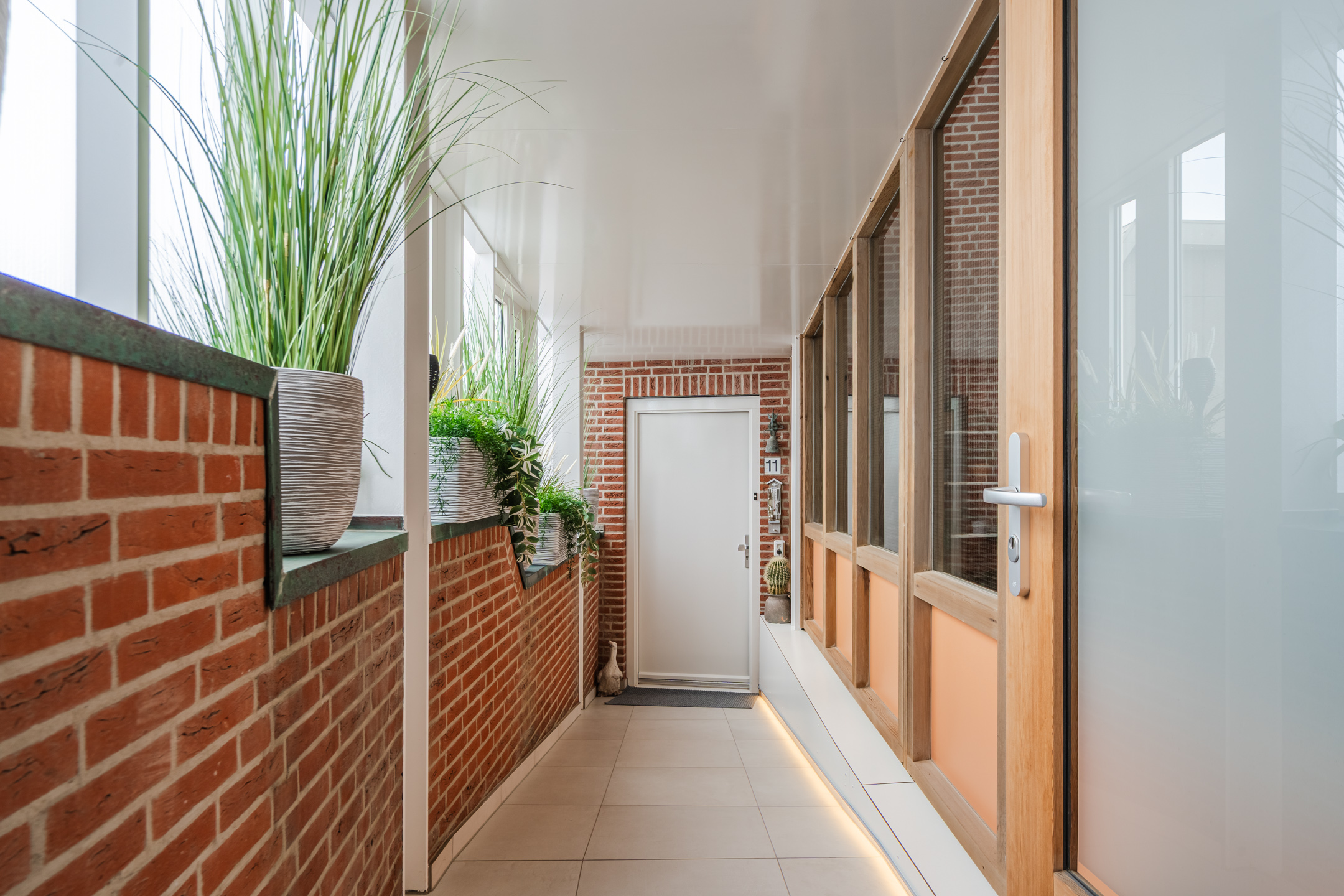 – Volledige afgesloten en overdekte privé entree van ca. 9 m2 (voorzien van ledverlichting);