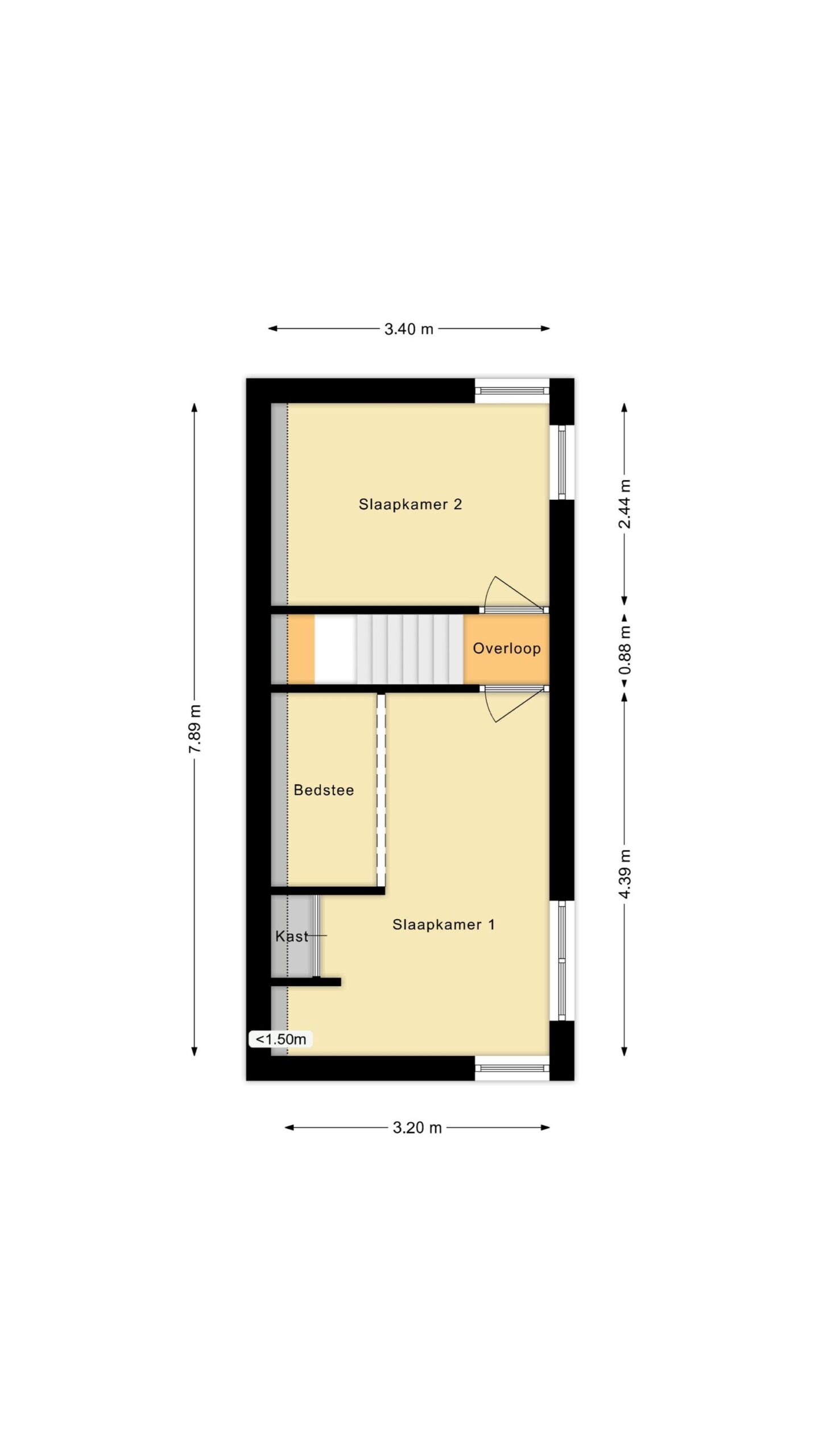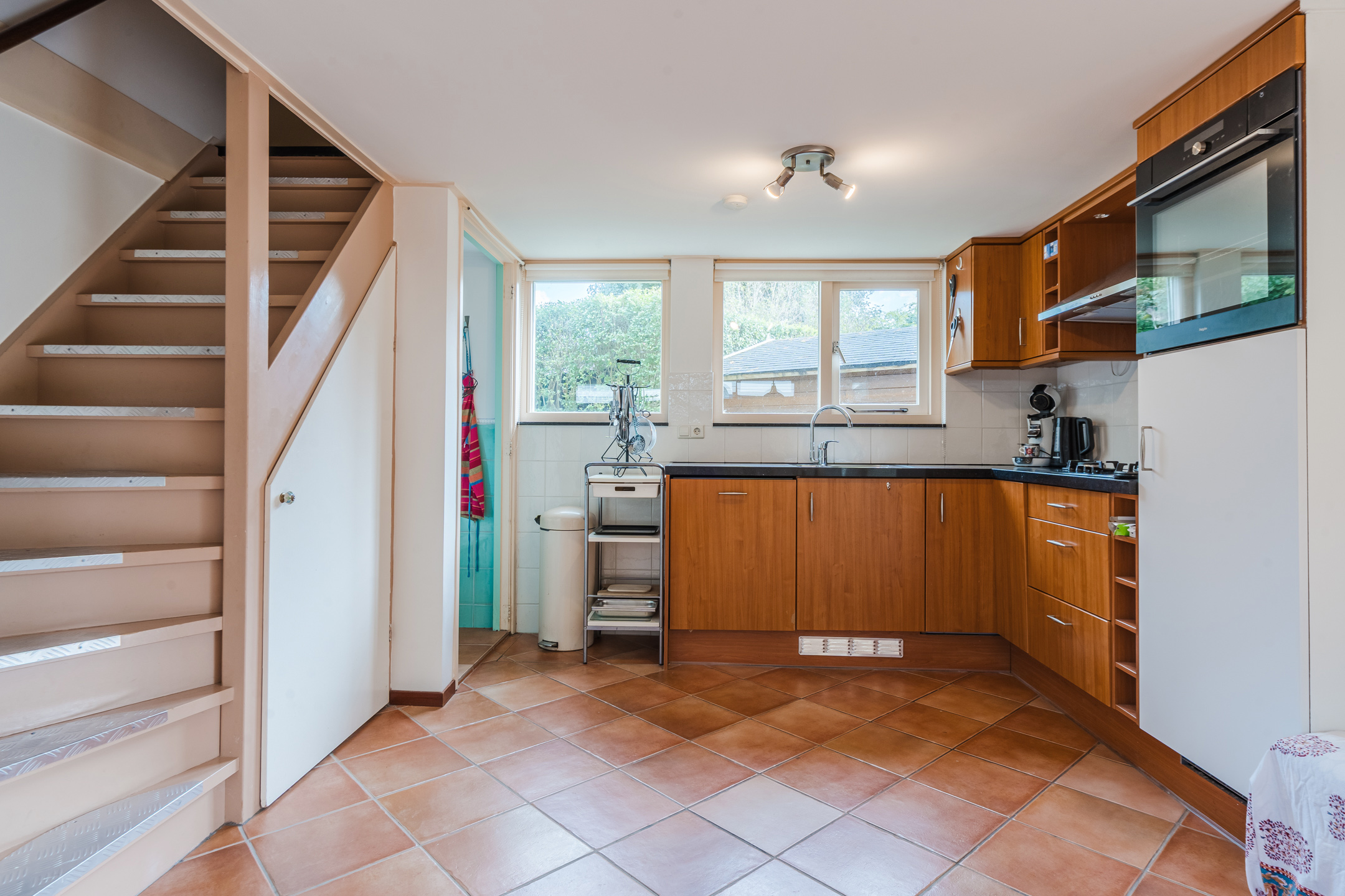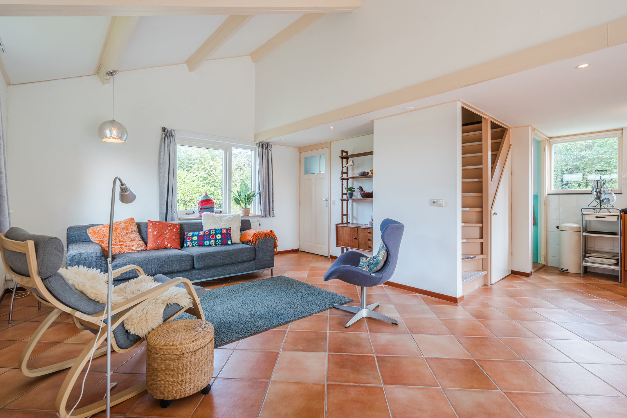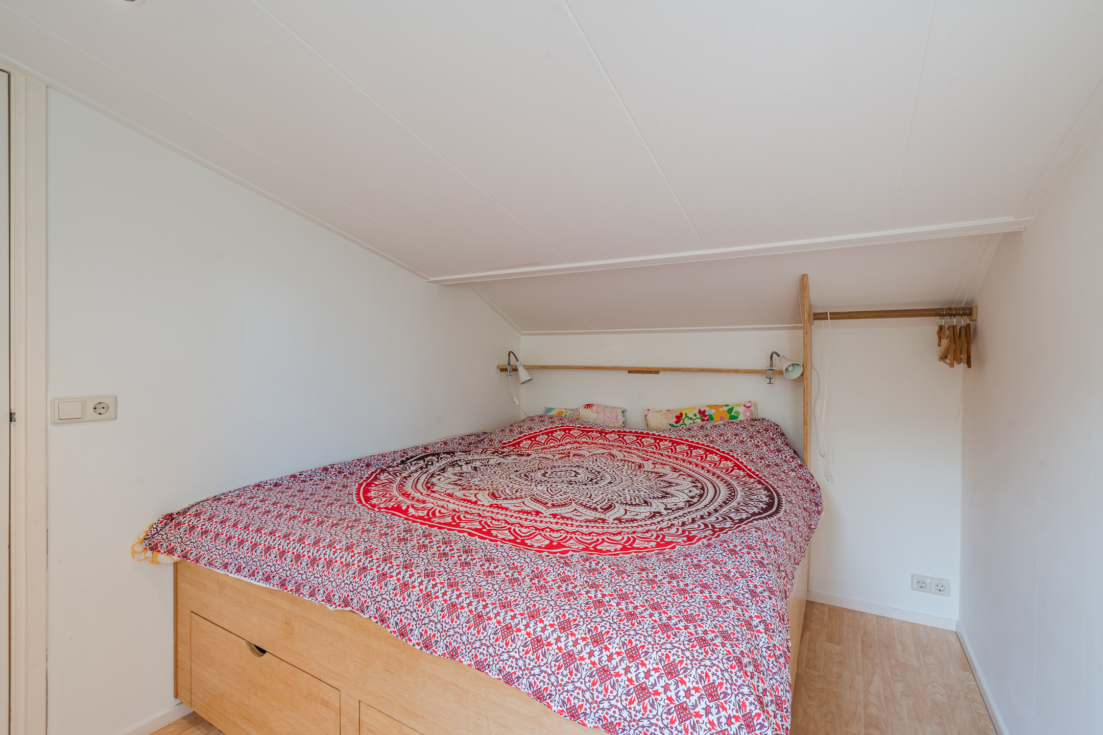 De woonkamer is ruim en heerlijk licht door de vele raampartijen en de aanwezigheid van een schuifpui. Verder is er op de begane grond een open keuken en een ruime badkamer met toilet, douche en wastafel. Boven bevindt zich het slaapgedeelte met twee aparte slaapkamers. Verder is er nog een bergruimte waar de Cv-ketel en de boiler staan en waar u het witgoed kunt plaatsen.